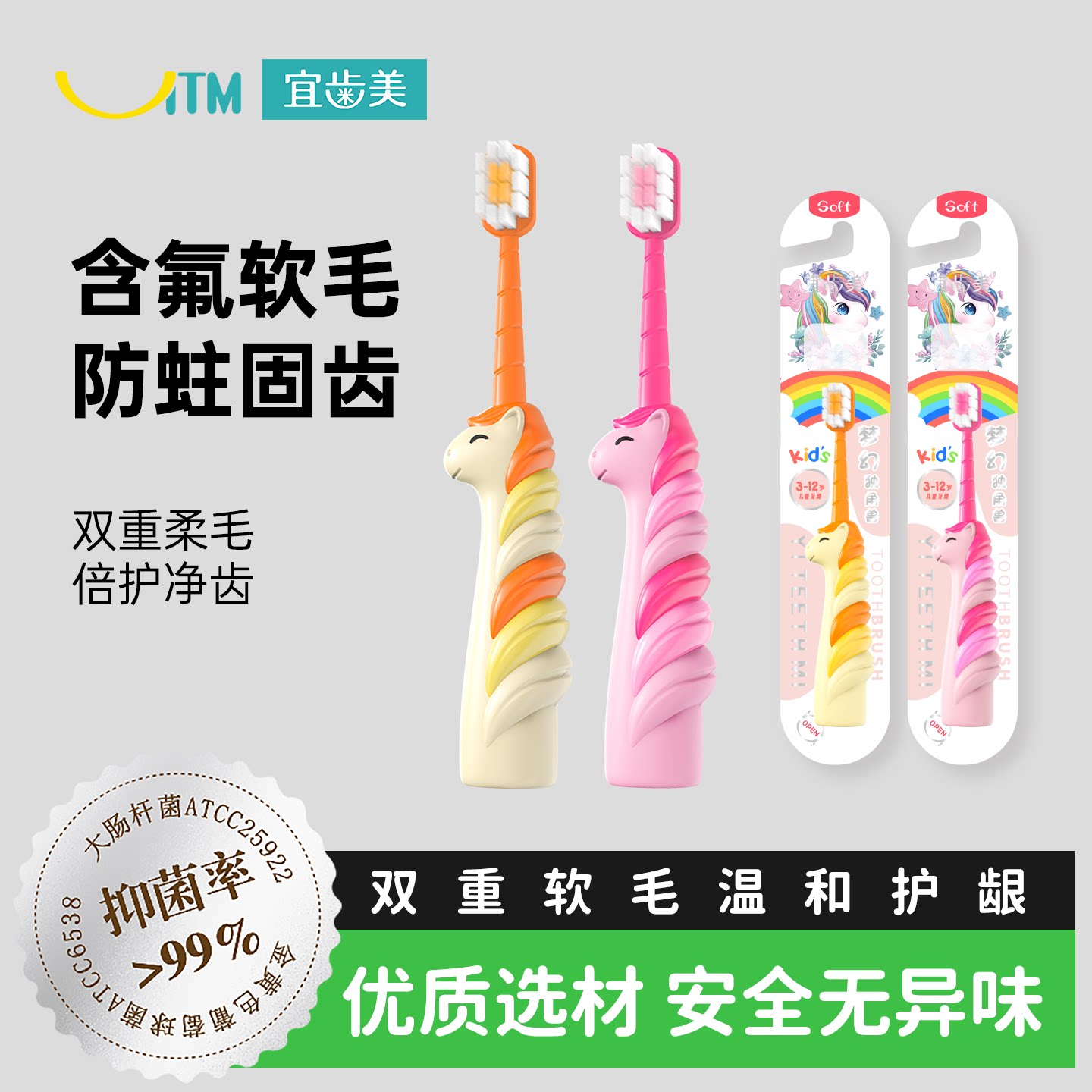 英格翰儿童牙刷软毛2-12岁换牙期训练刷毛柔软护龈洁齿植毛工艺