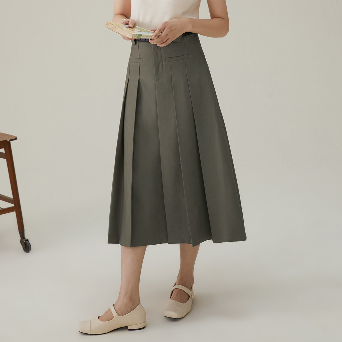 RAPPEYE口袋工装裙美式复古简约a字休闲设计感百搭中长款半身裙潮