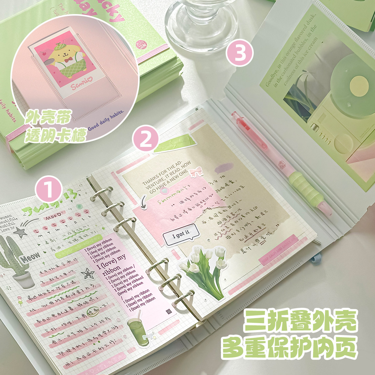 三年二班 LUCKYDAY三折活页本高颜值笔记本本子PP错题本日记本薄脆本记事本b5初中生必备学习用品高中生专用