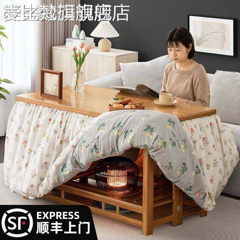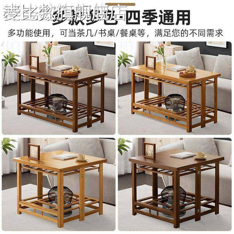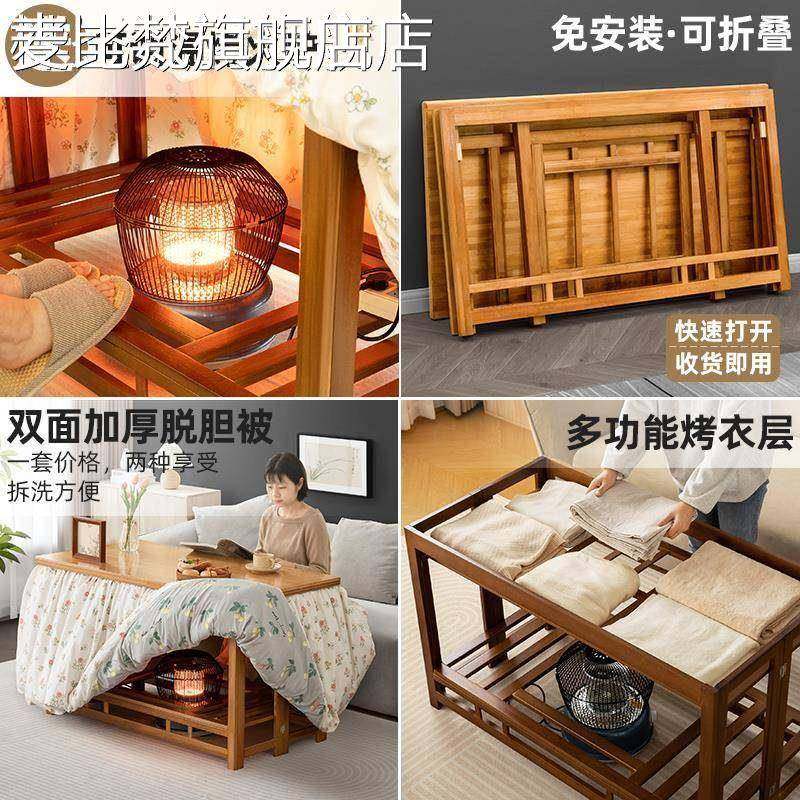 麦比梵烤火桌子家用新款实木折叠长方形烤火架简易冬季茶几取暖餐桌炕桌摆件垫垫床笠拉车