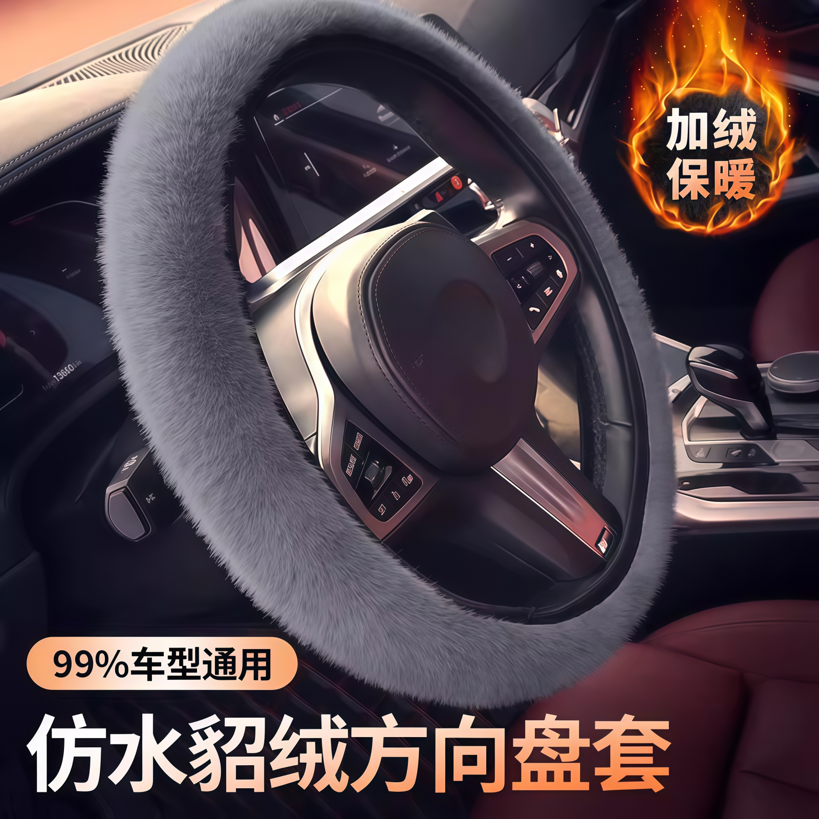 汽车方向盘套冬季毛绒通用仿雪貂绒保暖聚温车把套防滑车用男女款