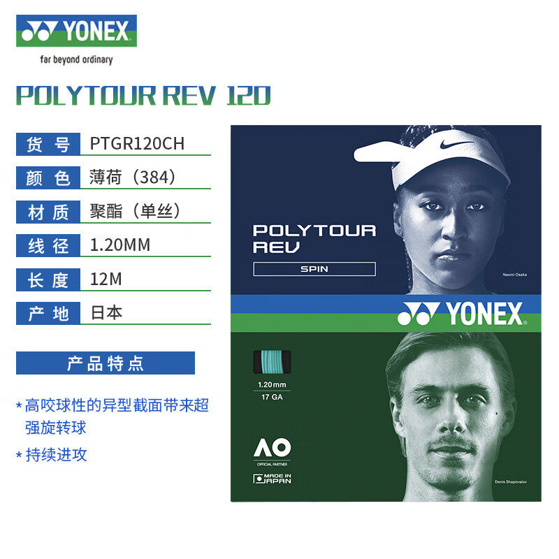 yonex尤尼克斯网球线专业网球拍拍线穿线网球线软线硬线PTGR125