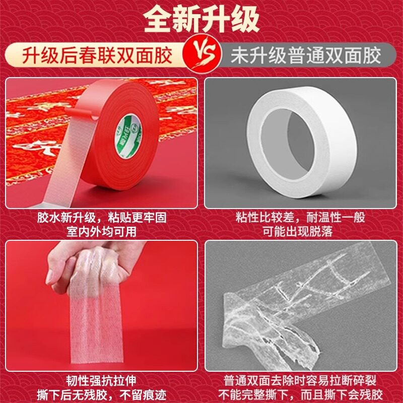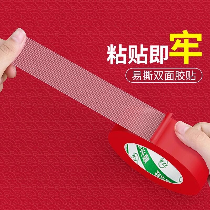 春节贴对联专用胶带神器贴春联无痕双面胶带贴春联红色喜庆不留痕迹婚庆婚房装饰必备春联福字强力固定墙面胶