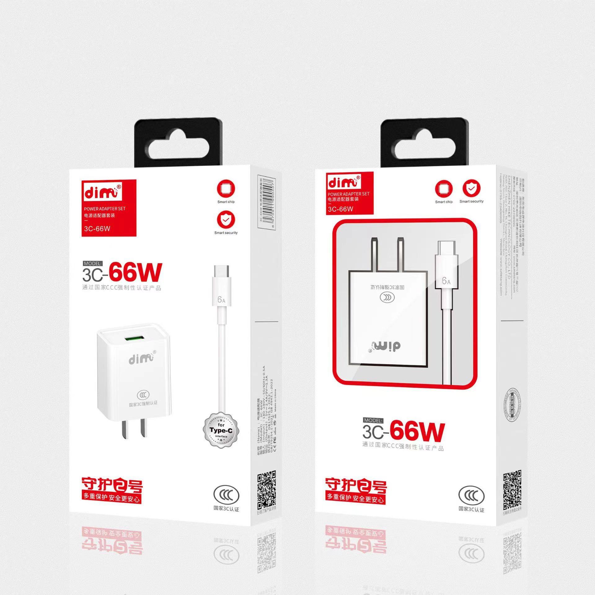 国标3C认证手机电源适配器大功率66W快充不伤电池安卓Type-C通用超级闪充安全稳定车载智能充电器套装单头