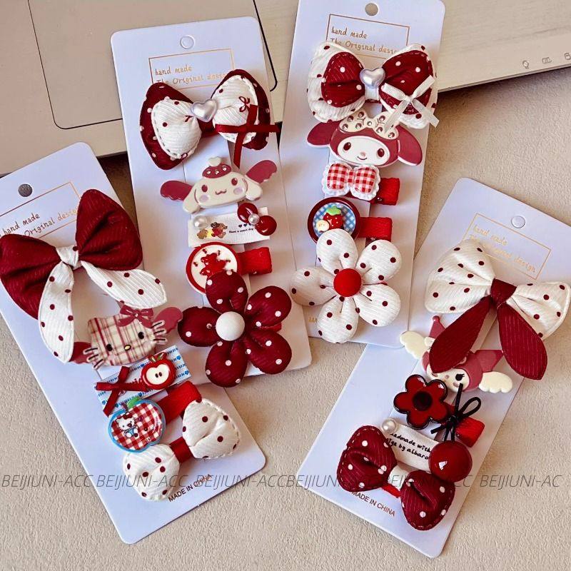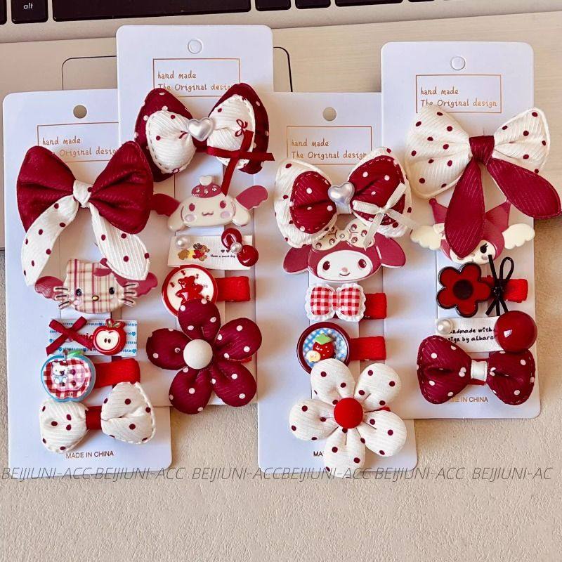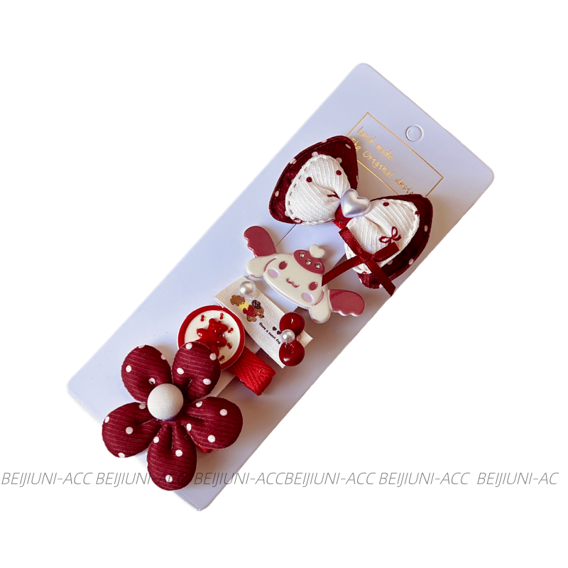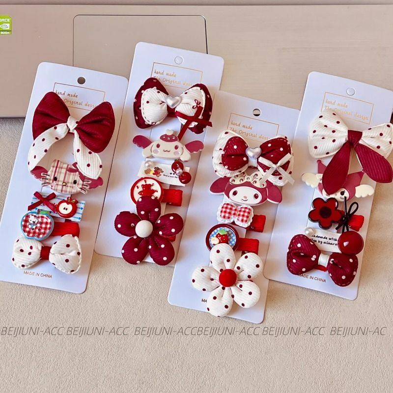 可爱卡通发夹女童酒红色蝴蝶结波点发饰儿童头饰套装独特五角星