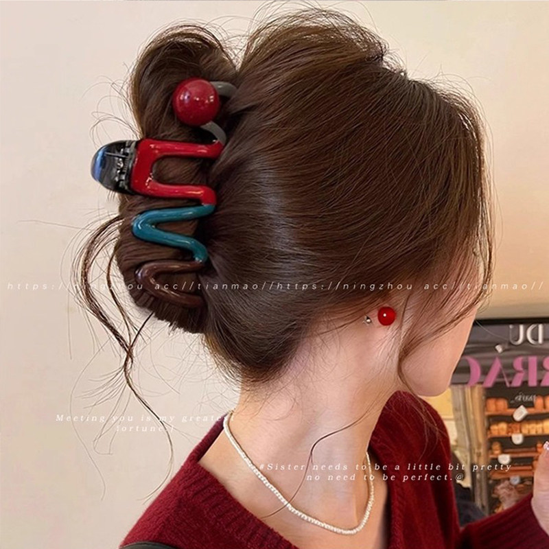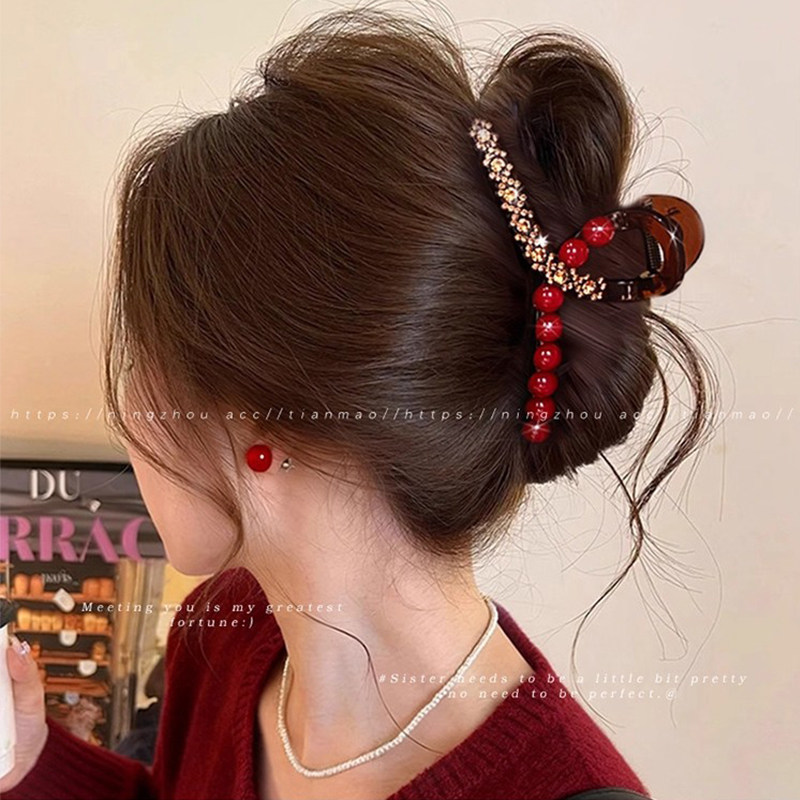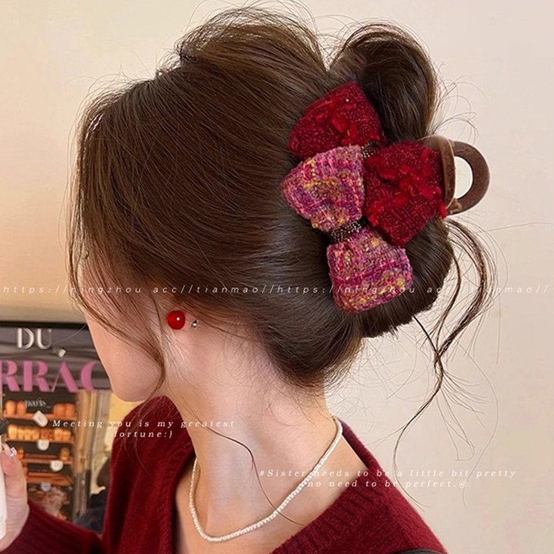 秋冬双蝴蝶结抓夹发夹女后脑勺鲨鱼夹2025新款高级感发饰新年红色