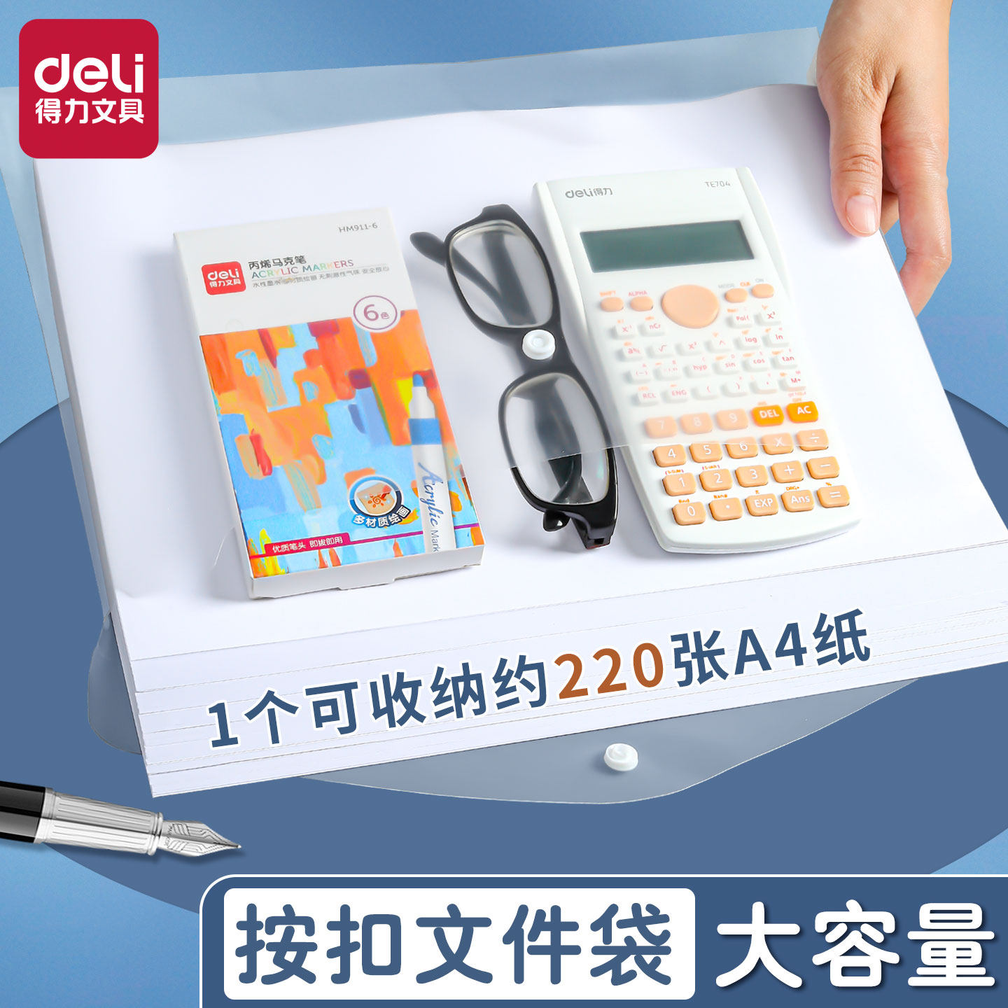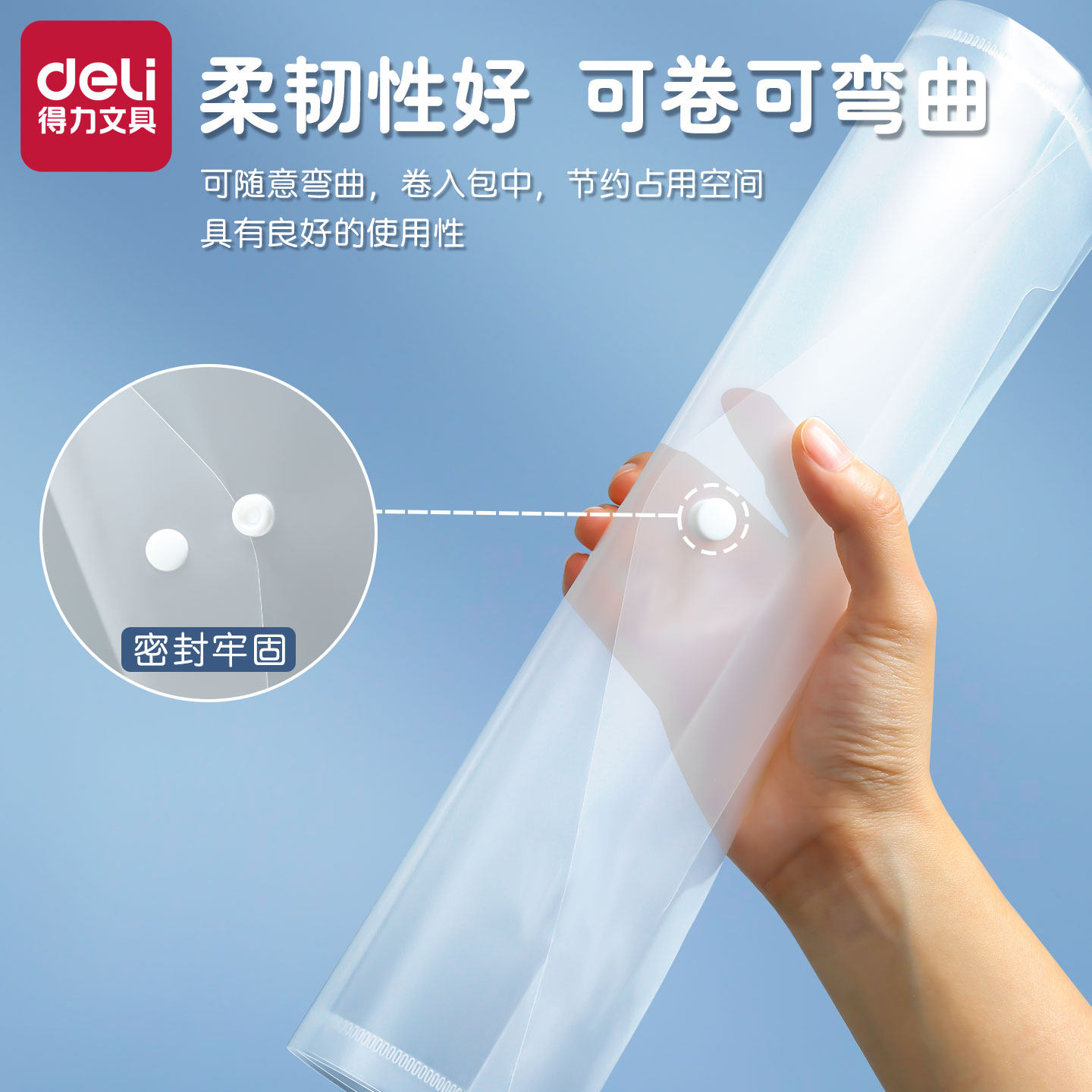 得力透明文件收纳袋学生试卷用资料档案A4小学生加厚分类中生办公整理用品防水按扣塑料款学科初高中生书袋