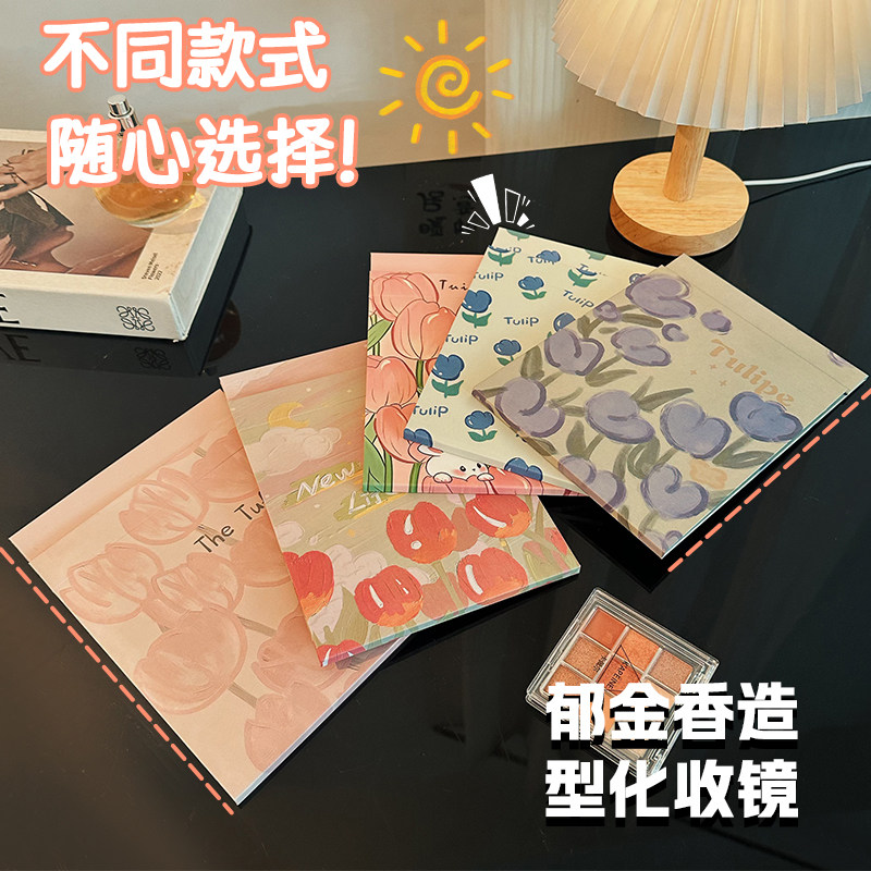郁金香镜子化妆镜折叠便携学生宿舍用随身家用桌面梳妆镜可调节