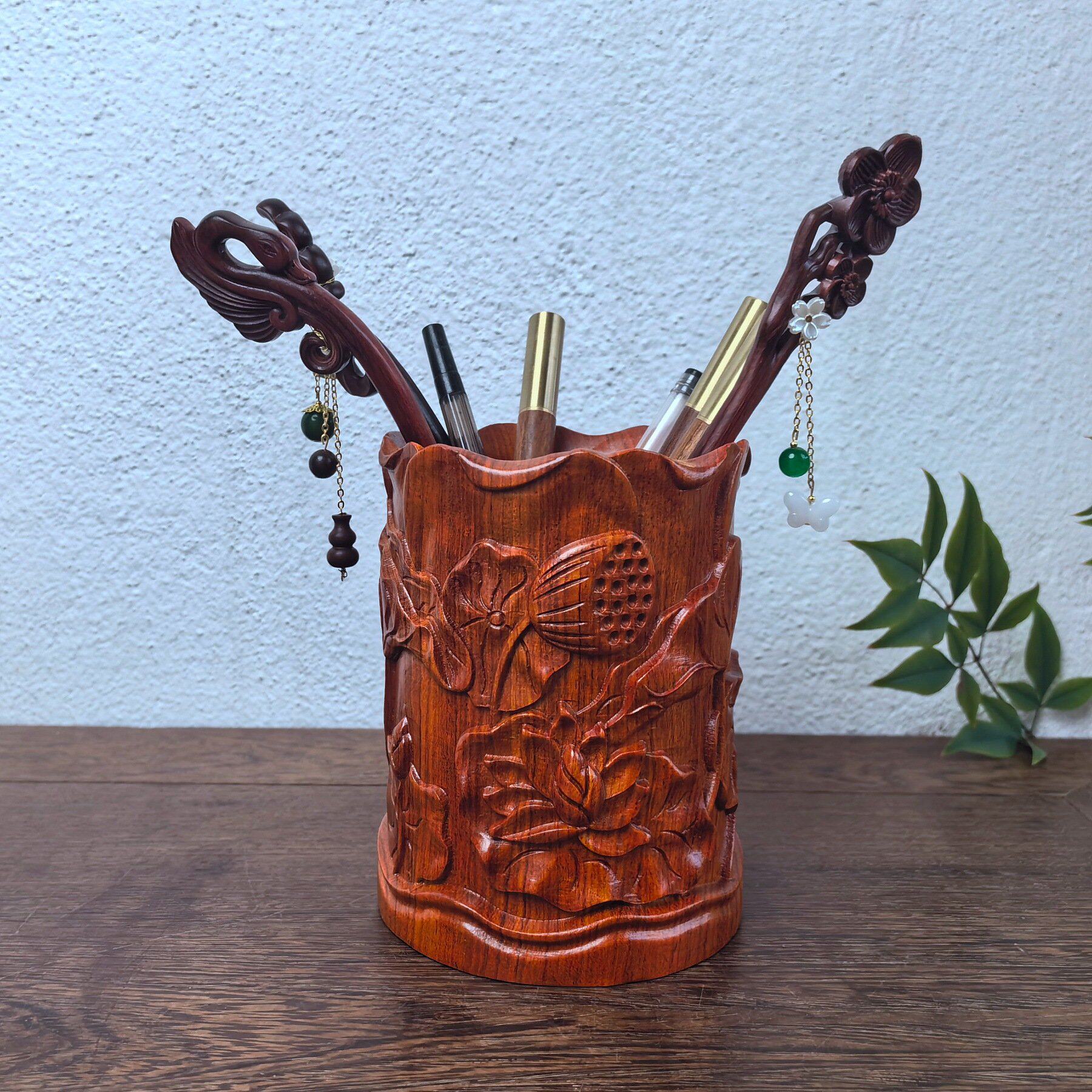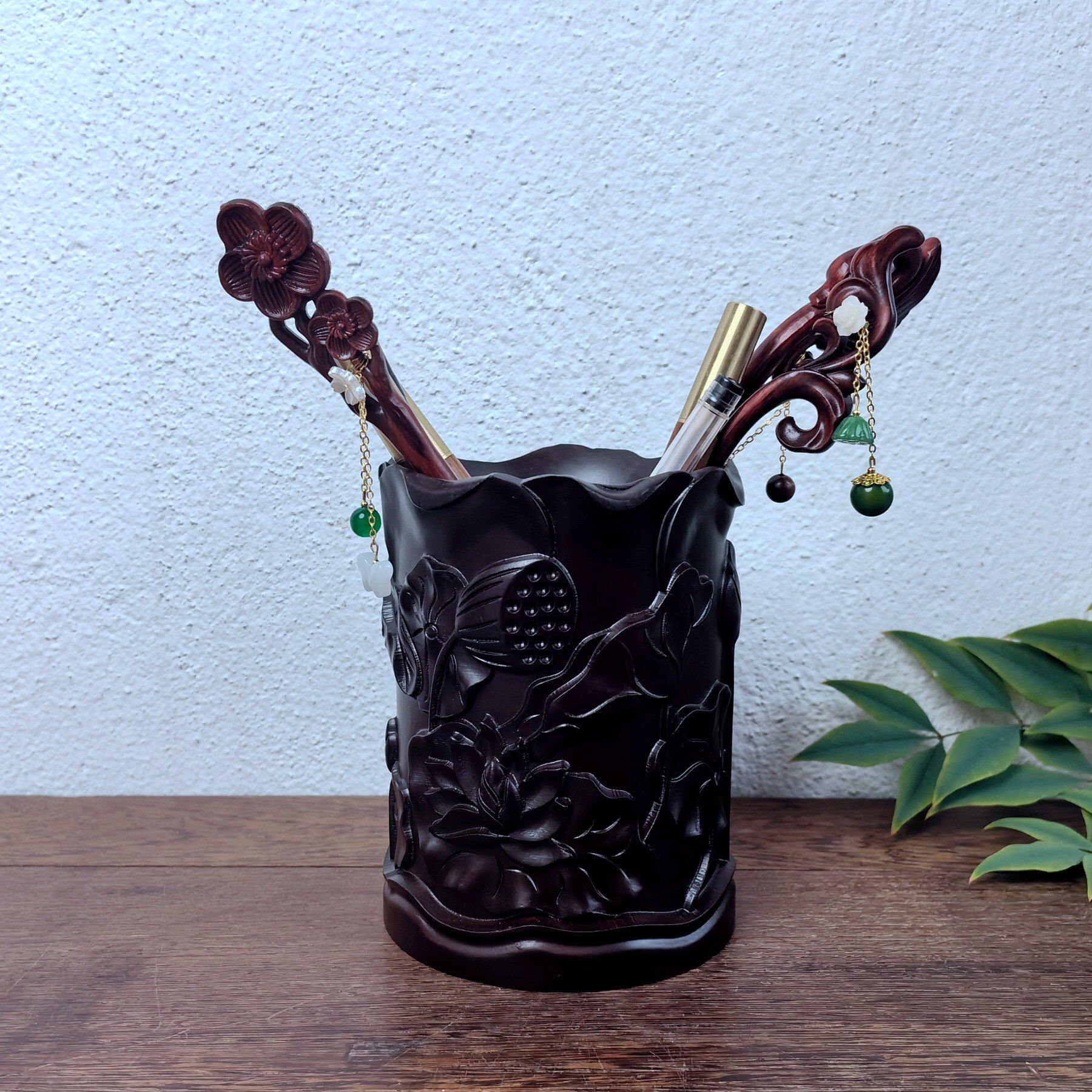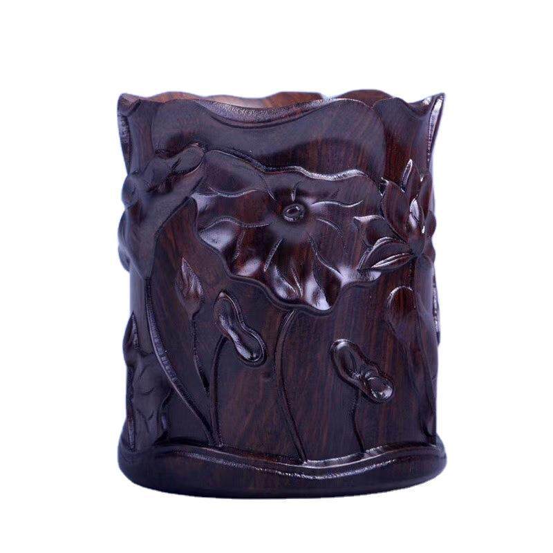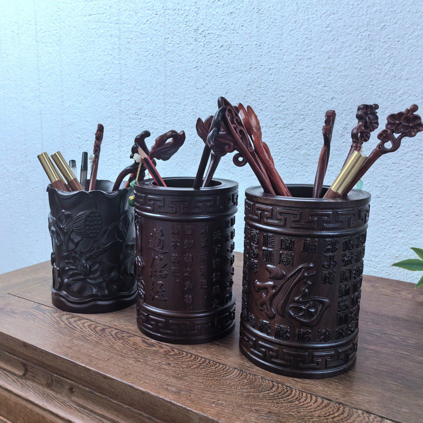 |老木工|黑檀红实木雕笔筒实用创意毕业礼品LOGO刻字木质ins毕业