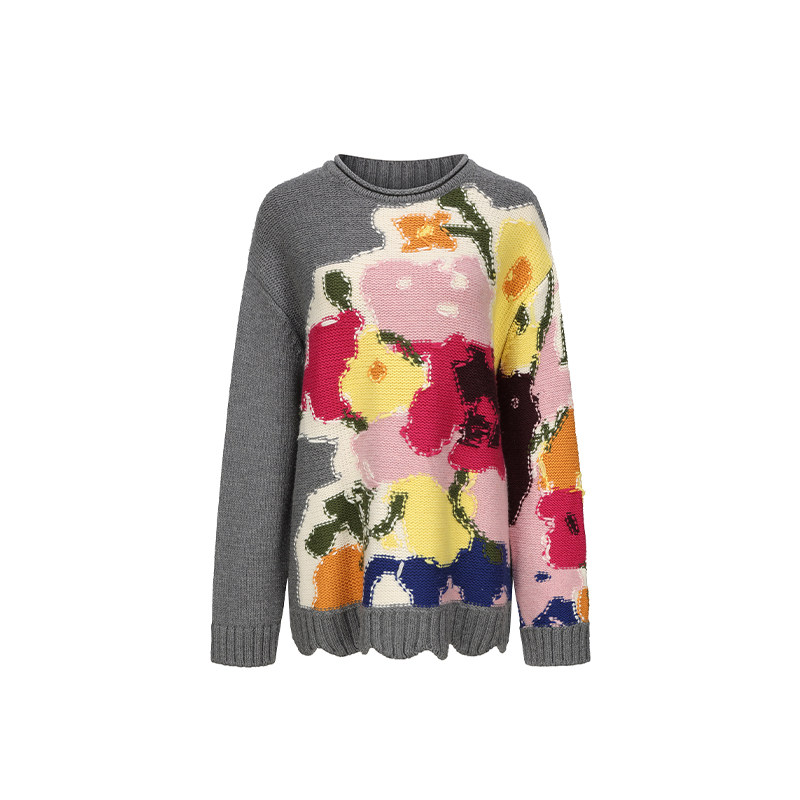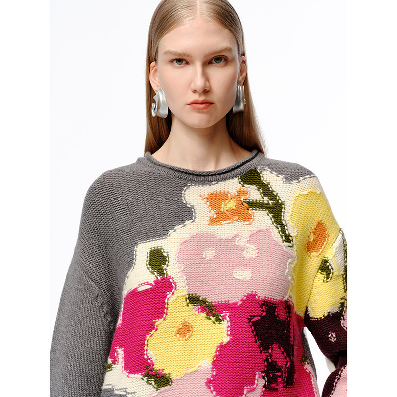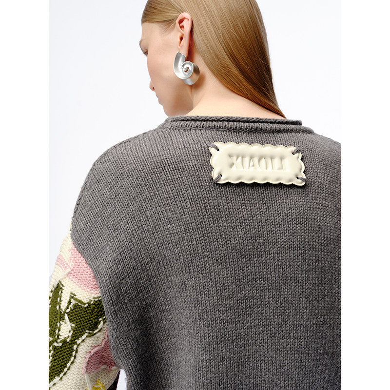 XIAOLI筱李 24秋冬新品灰色重工花瓶嵌花针织套头衫女