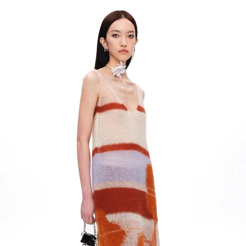【迪丽热巴同款】XIAOLI筱李焦糖色马海毛绞花不对称拼接毛衣开衫