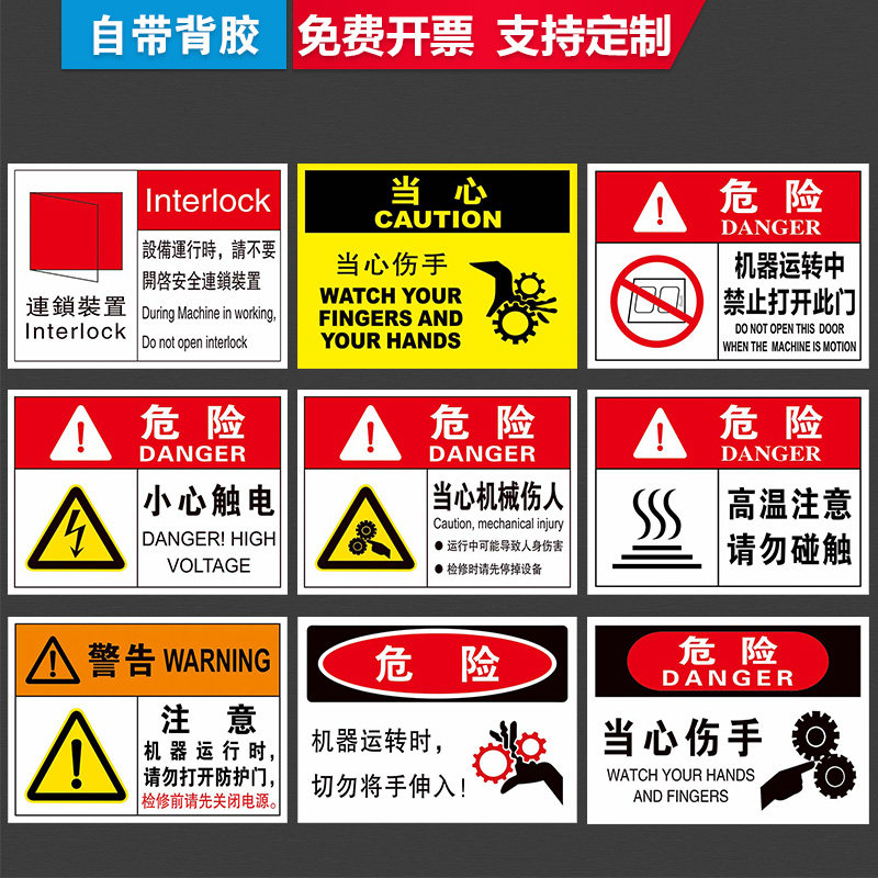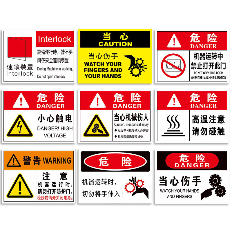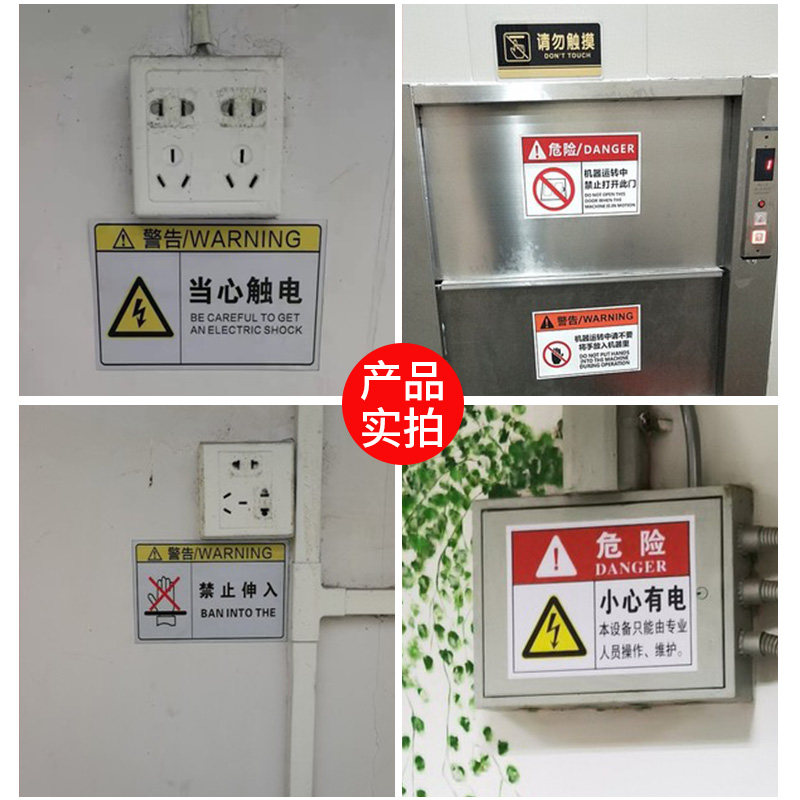 有电危险注意安全警示贴注意高温标签贴纸设备标示贴当心机械伤人小心夹手标识牌用电安全警示牌标识闪电标志