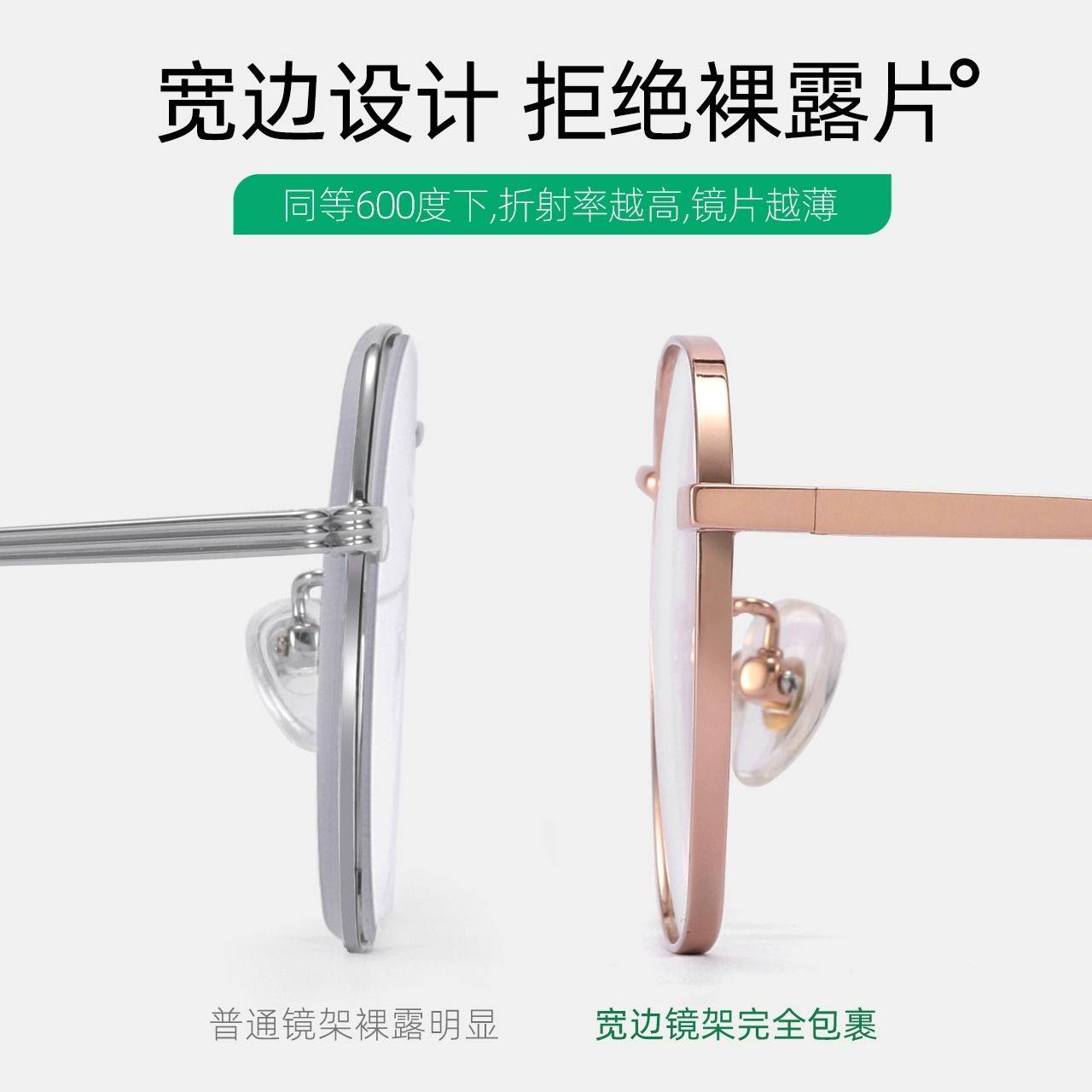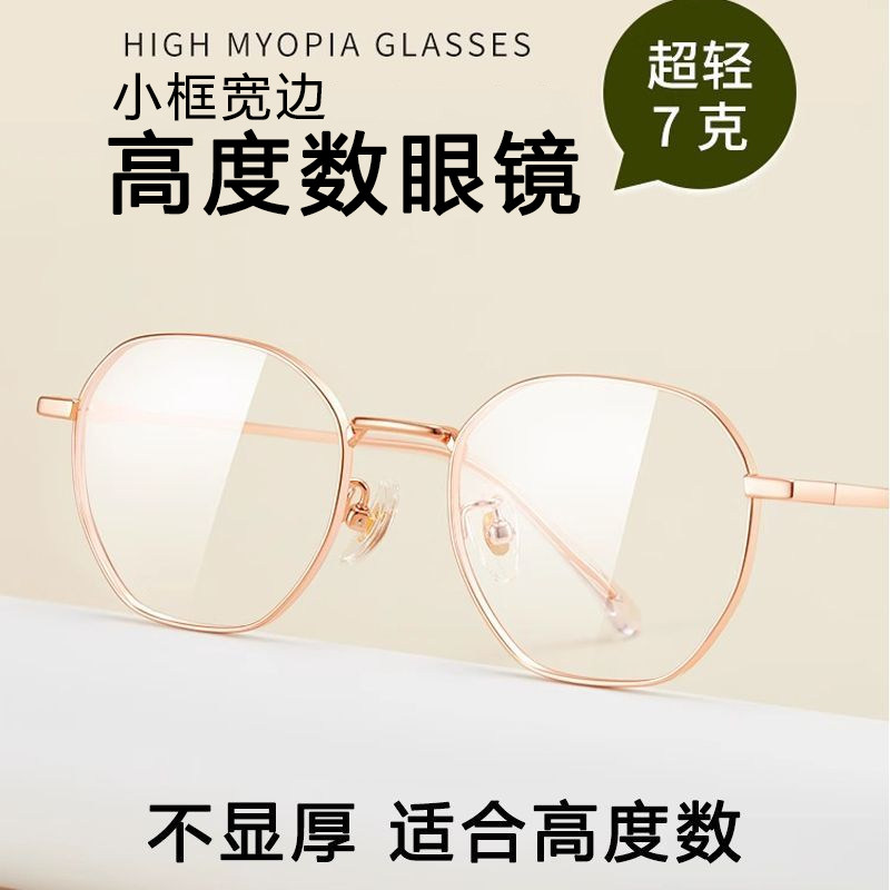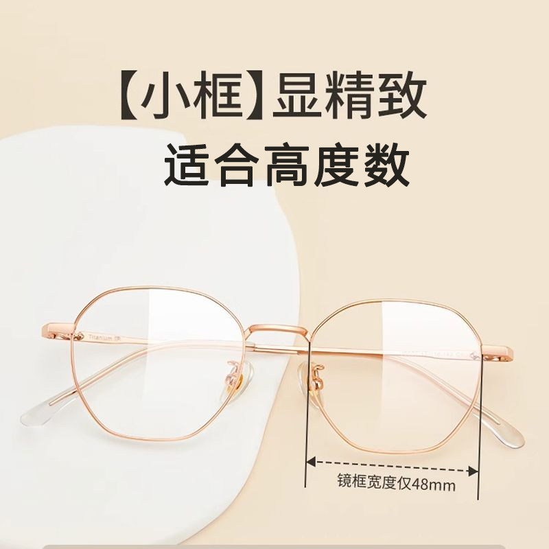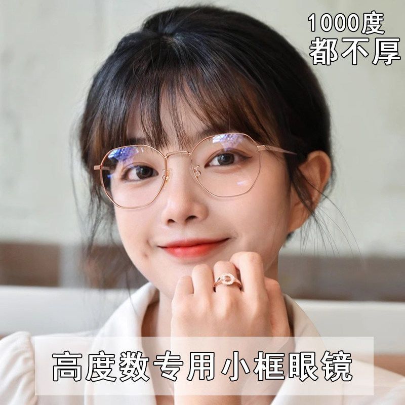 凯米镜片高度数女款小框宽厚边超轻钛多边形防蓝光可配近视度数J