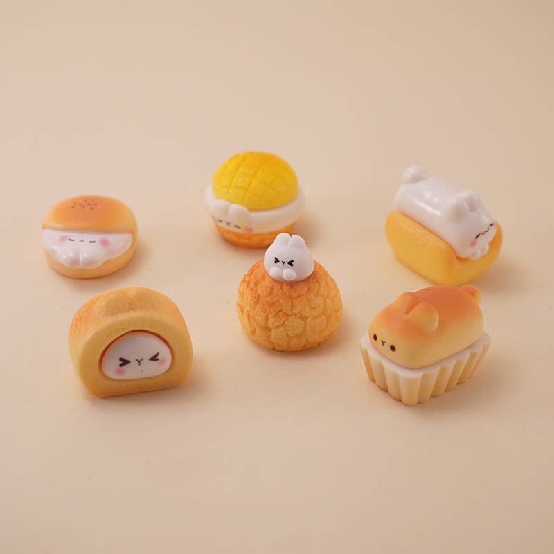 可爱泡芙甜品兔兔面包食玩 奶油胶手工做diy装饰品盲袋配件小摆件
