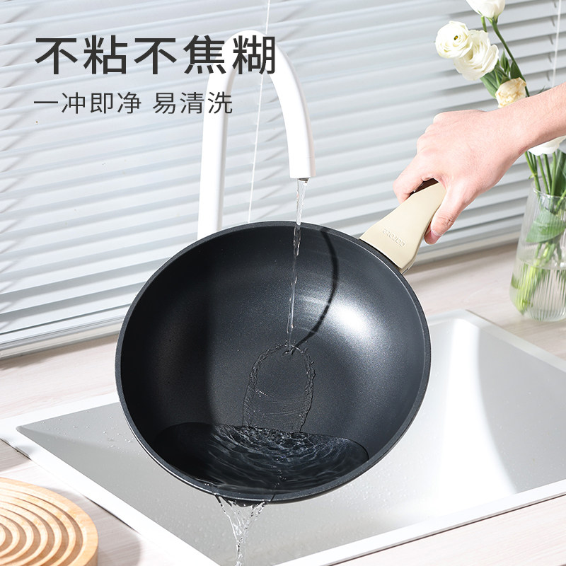 卡罗特不粘锅炒锅家用麦饭石炒菜锅平底不沾钛锅电磁炉燃气灶专用