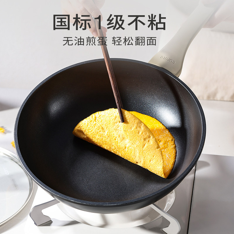 卡罗特不粘锅炒锅家用炒菜不沾锅小平底锅燃气灶电磁炉炒菜锅专用