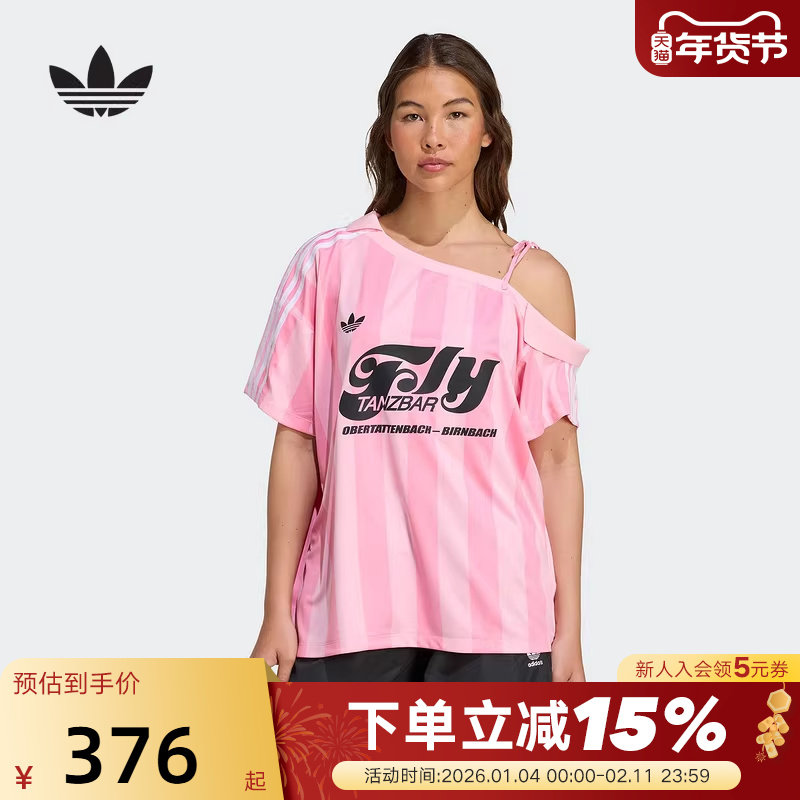 adidas阿迪达斯三叶草露肩短袖足球衣透气秋女条纹T恤上衣KD2277
