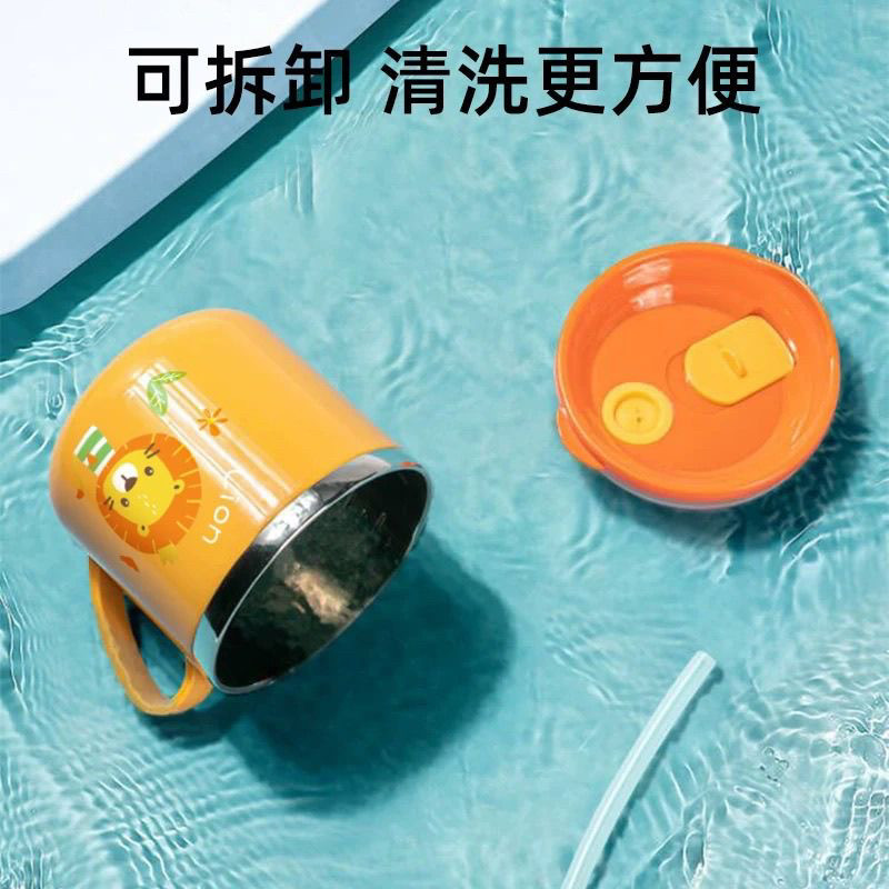 乐起保温吸管杯一岁以上宝宝奶瓶陶瓷覆层内胆幼儿外出防摔大容量