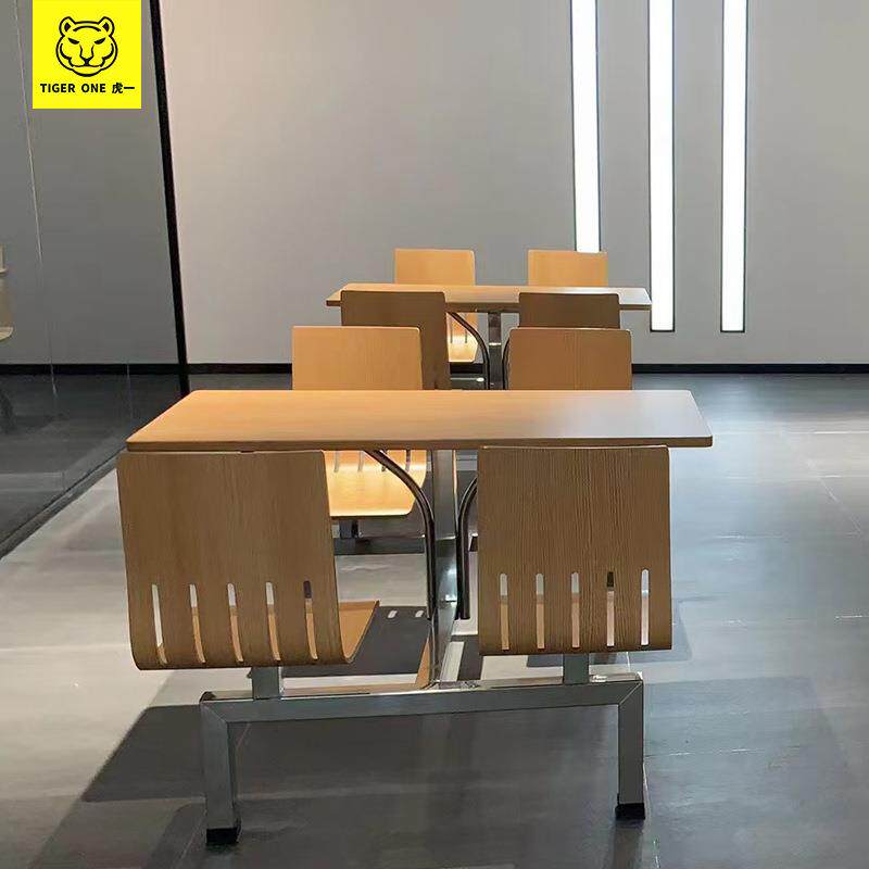 虎一家具四人连体不锈钢一体餐桌椅学生校用餐厅饭堂公司员工食堂