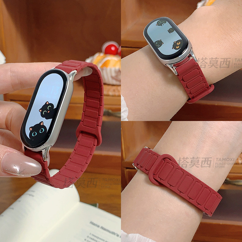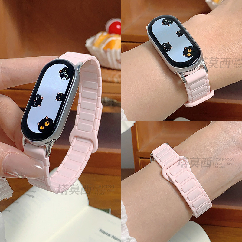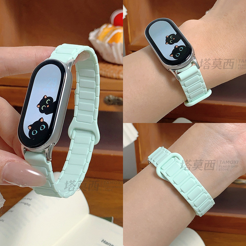 适用小米手环新款10代升级硅胶磁吸表带能配件9/8/7/6/5/4/3代NFC通用非原装替换带运动透气时尚高级智男女生