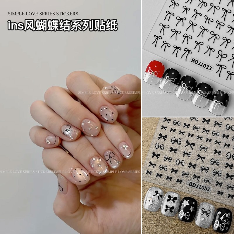 法式蝴蝶结美甲贴纸简约ins风少女心飘带领结背胶指甲贴装饰