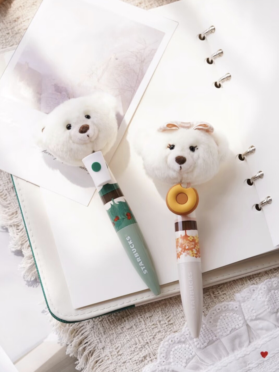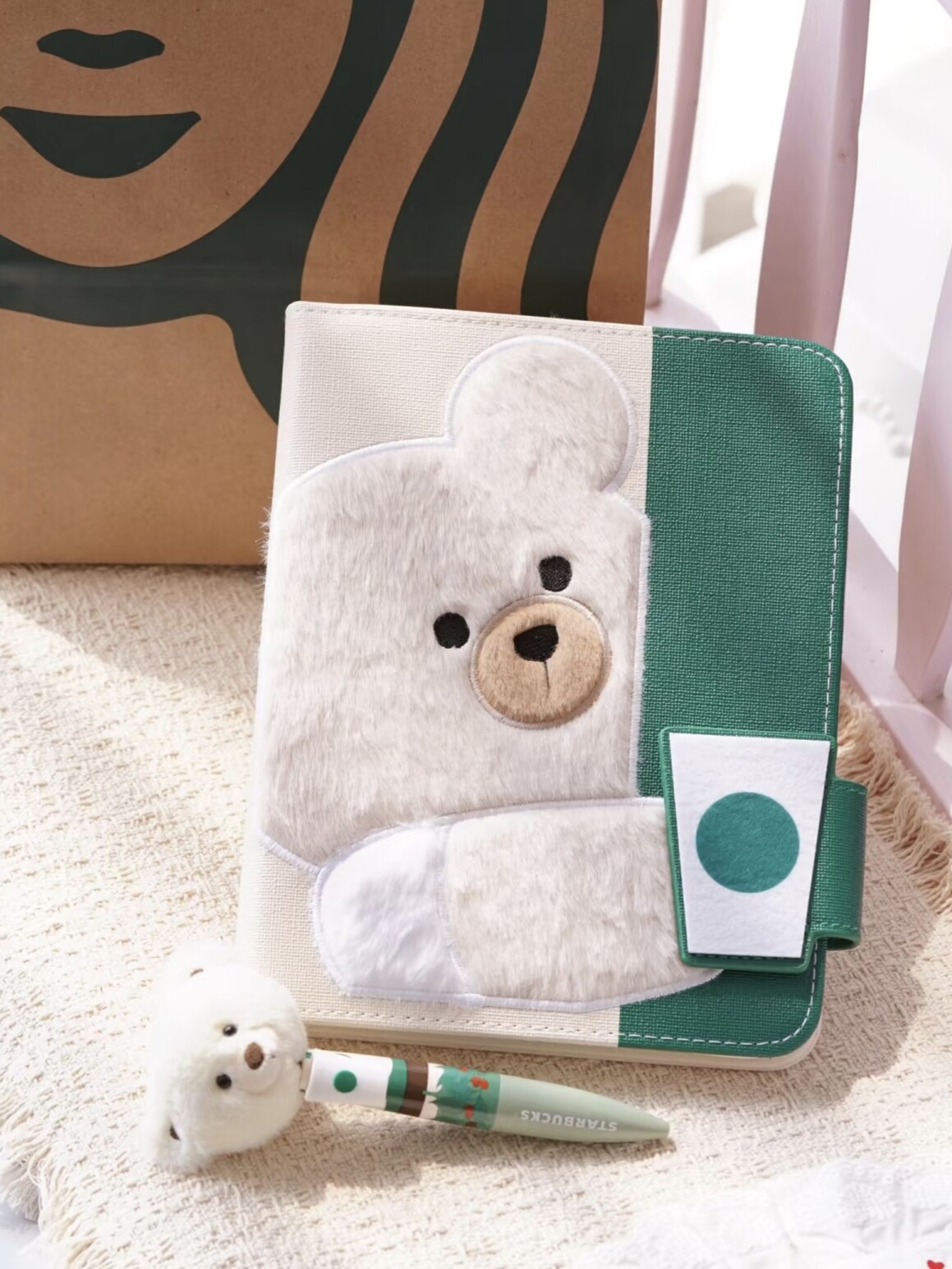 星巴克熊店长笔记本毛绒可爱三明治笔袋专星送限定创意文具摇摇笔