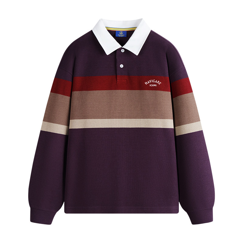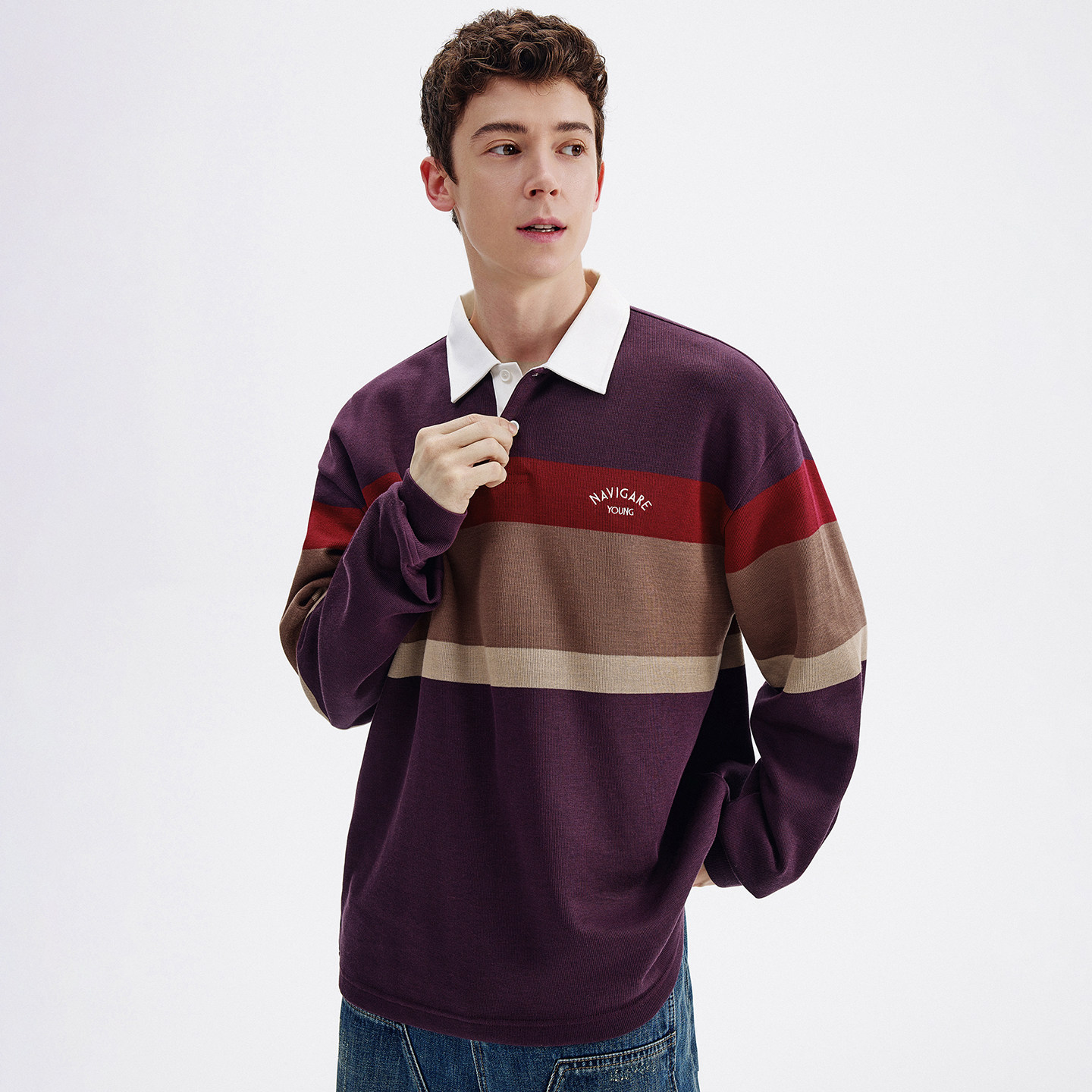 NAVIGARE意大利小帆船撞色翻领长袖T恤男秋季休闲纯棉条纹POLO衫