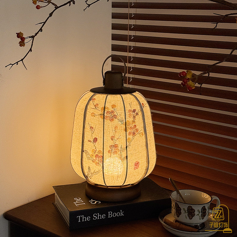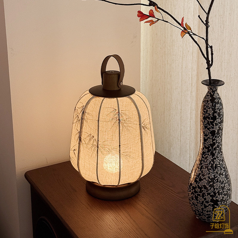 宋代美学新中式国风素雅台灯茶室卧室手提书法布艺装饰氛围小夜灯