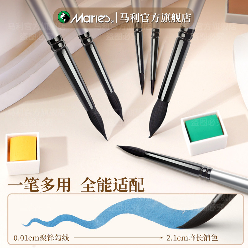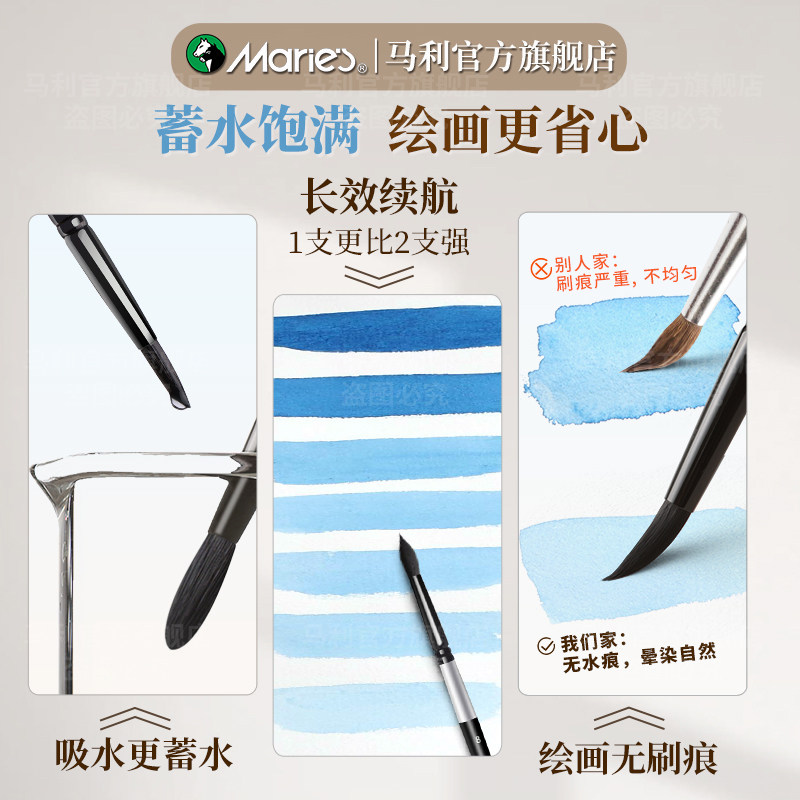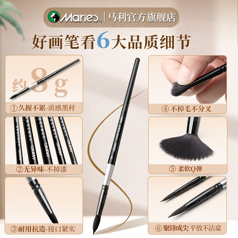马利黑天鹅水彩画笔套装8号美术生专用数字油画毛笔尼龙颜料笔圆头排刷子专业6号绘画工具松鼠毛旅行笔勾线