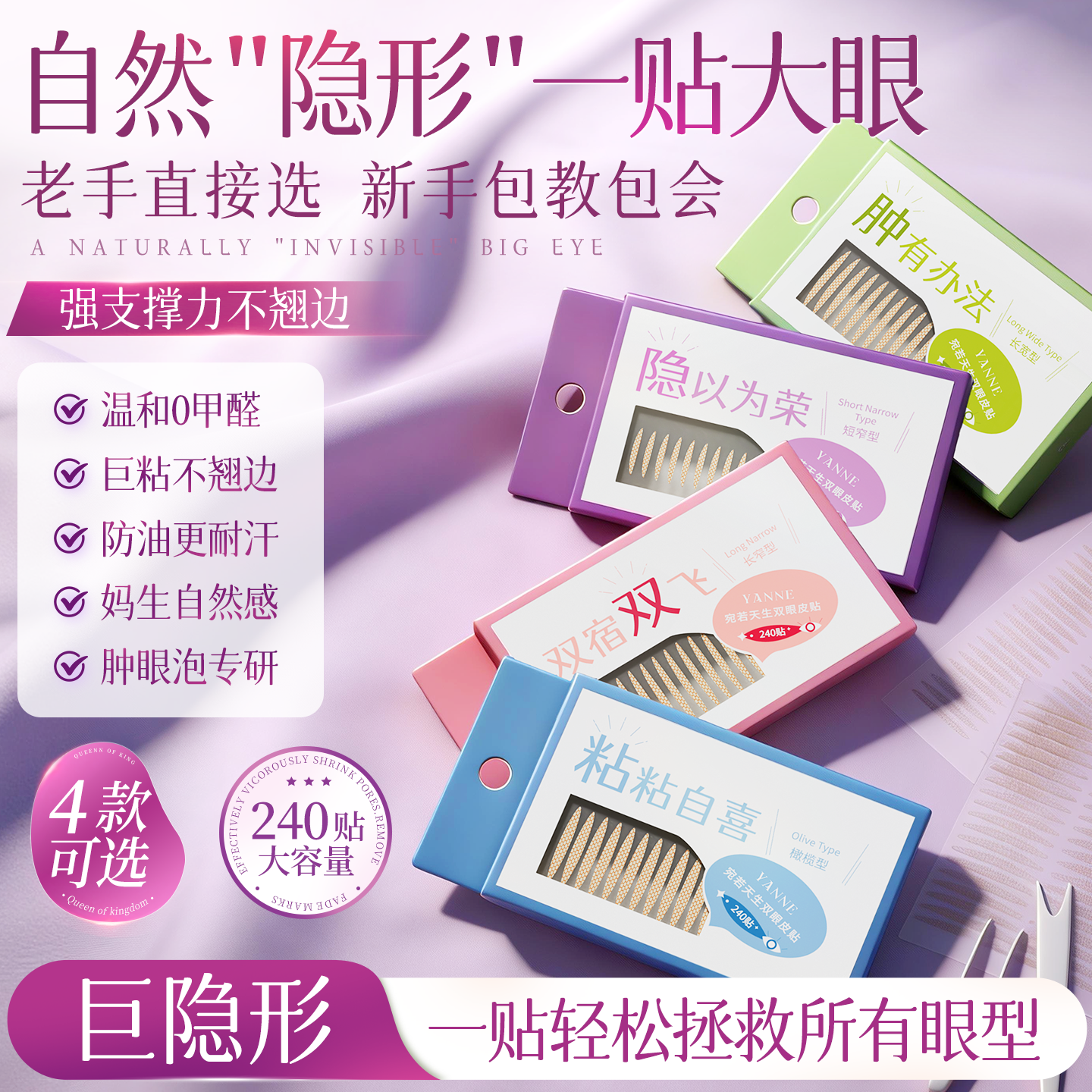双眼皮贴隐形自然无痕蕾丝男女肿眼泡专用支撑力强持久定型防下垂