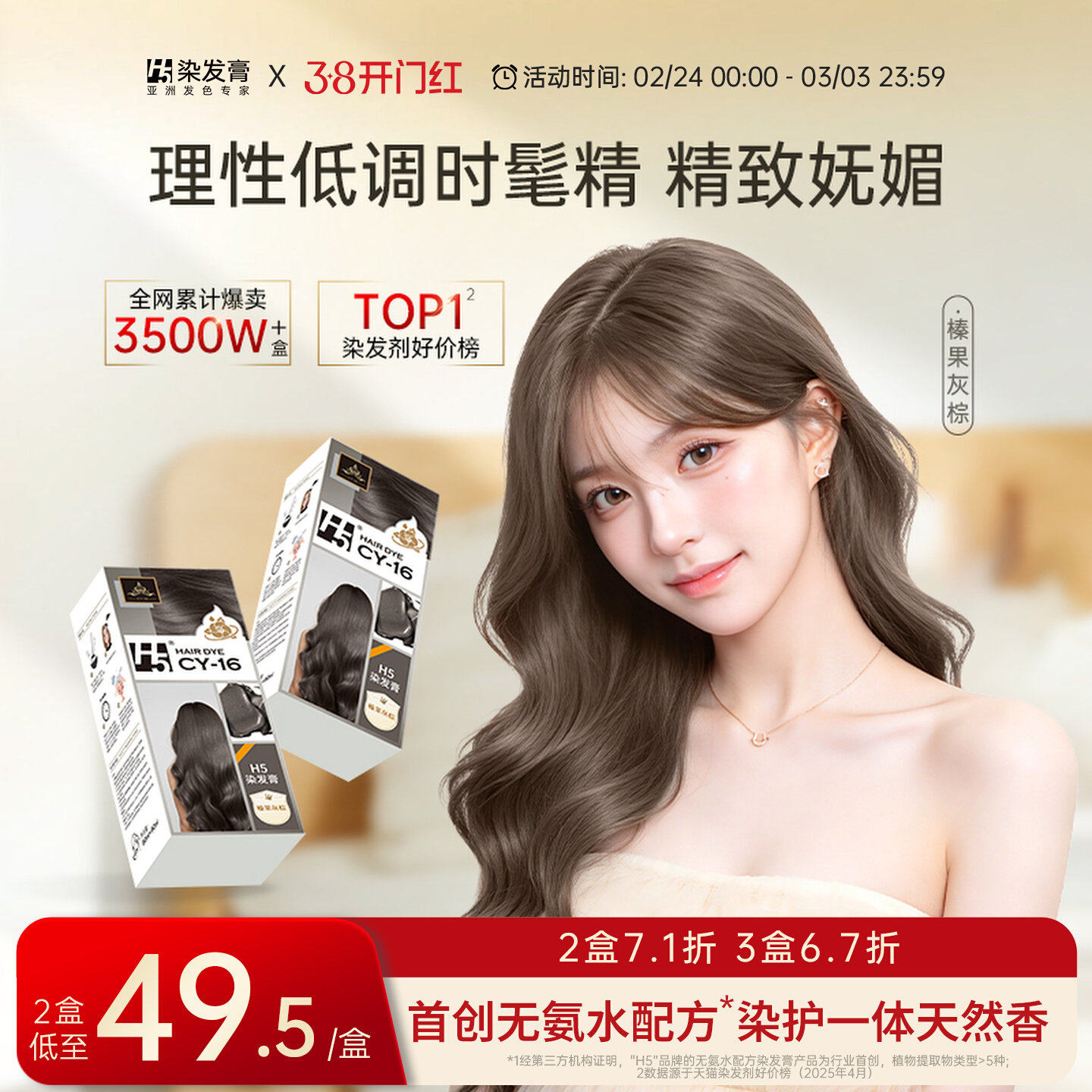 H5染发膏植物纯榛果灰棕黑茶色冷棕色染发剂男女在家染官方正品