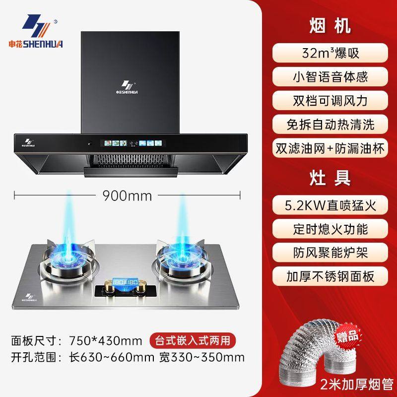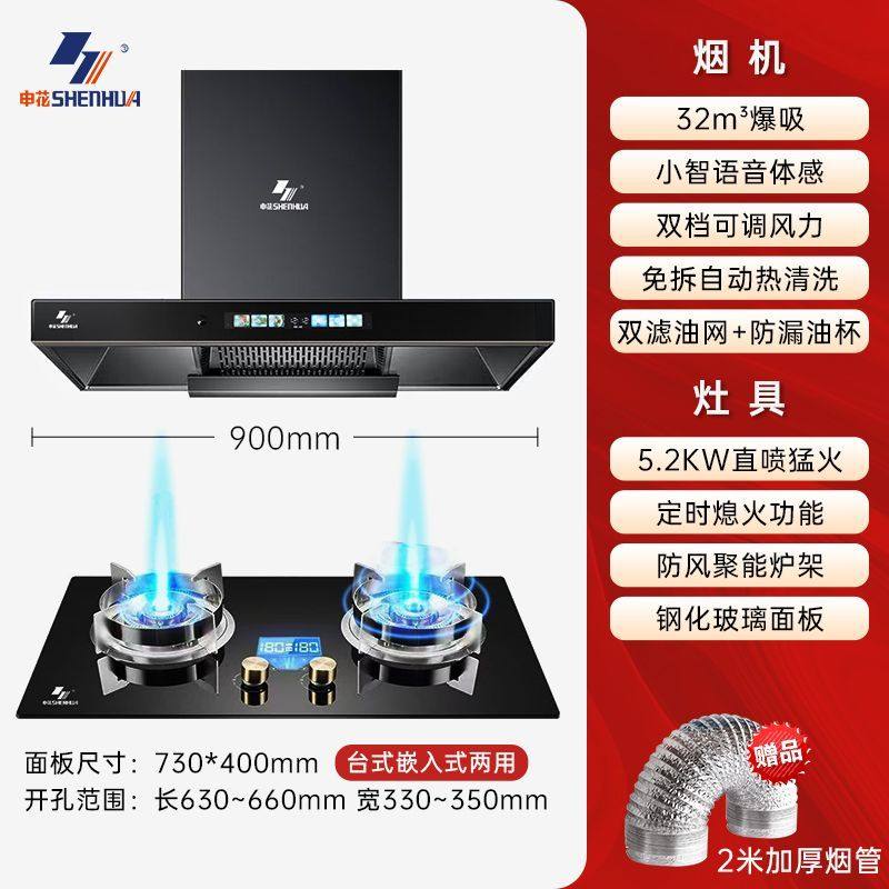上海申花顶吸式抽油烟机燃气灶家用厨房大吸力烟灶组合套装两件套