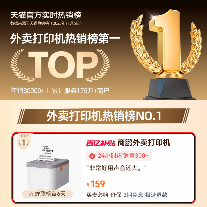 商鹏美团饿了么京东外卖打印机秒送商用wifi全自动接单打单蓝牙热敏小票打印机4G云餐饮订单打单闪购专用一体