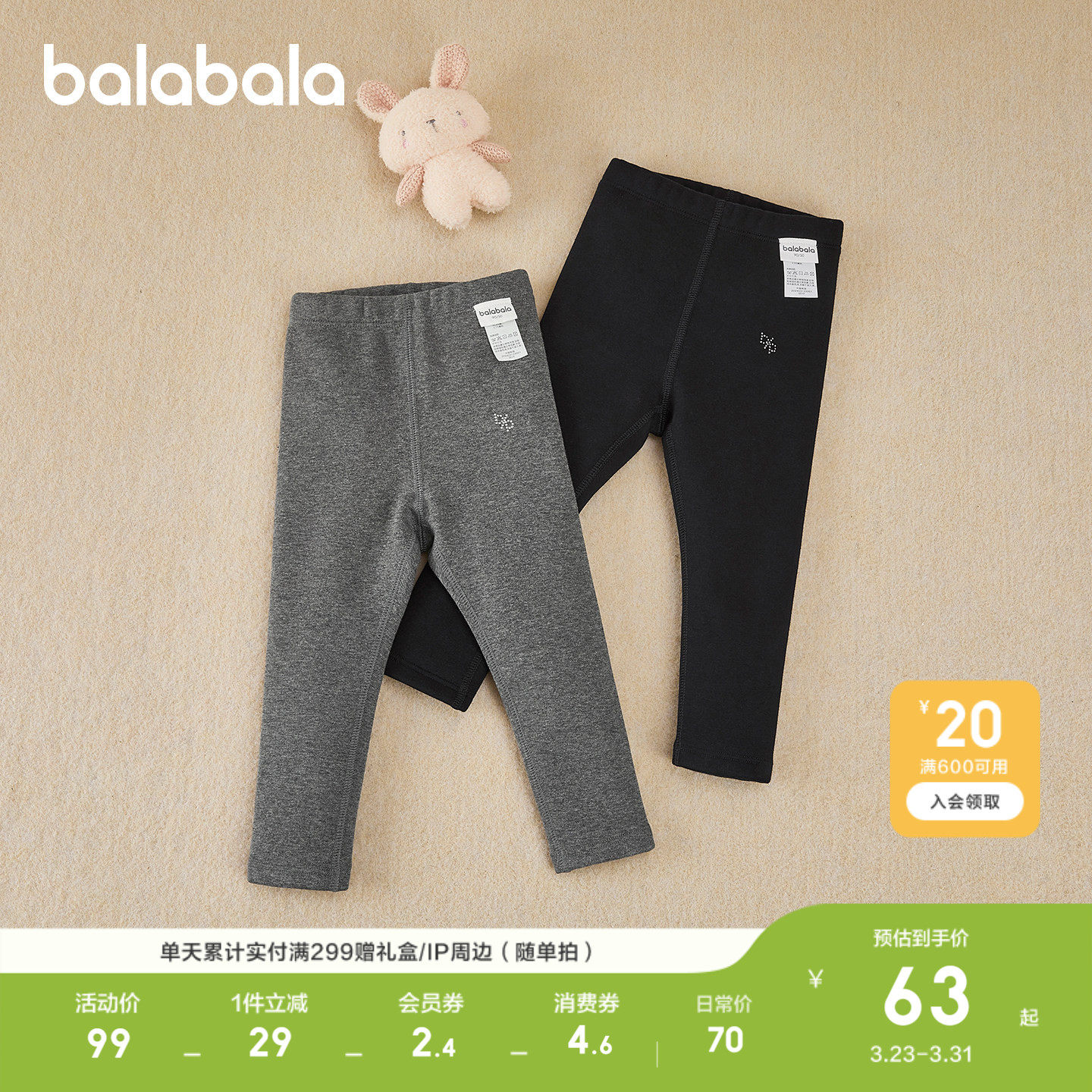 【商场同款】巴拉巴拉童装儿童打底裤女童2026秋冬装休闲加绒长裤