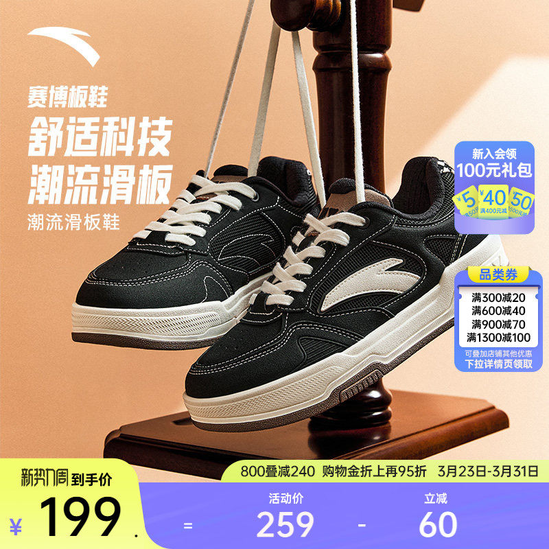 【王一博同款】安踏赛博丨赛车风经典低帮黑白板鞋女小白鞋运动鞋
