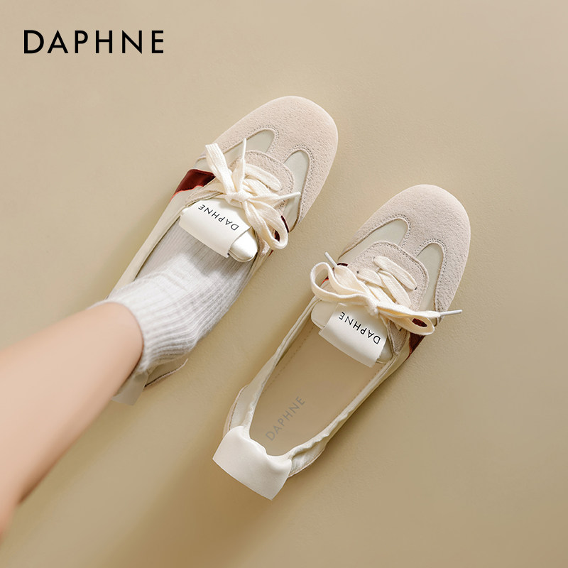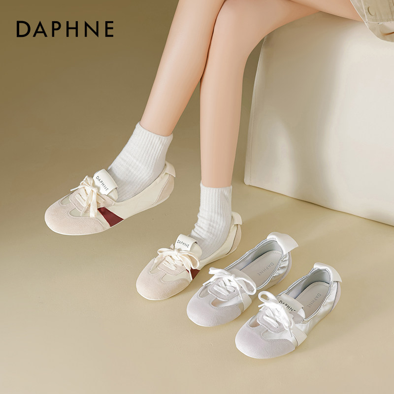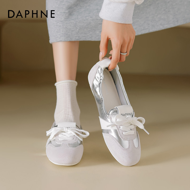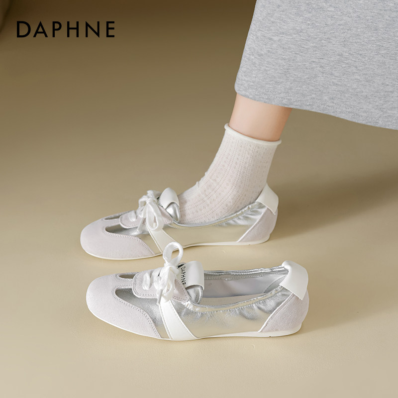 达芙妮芭蕾风德训鞋女2025秋季新款内增高单鞋舒适平底银色休闲鞋