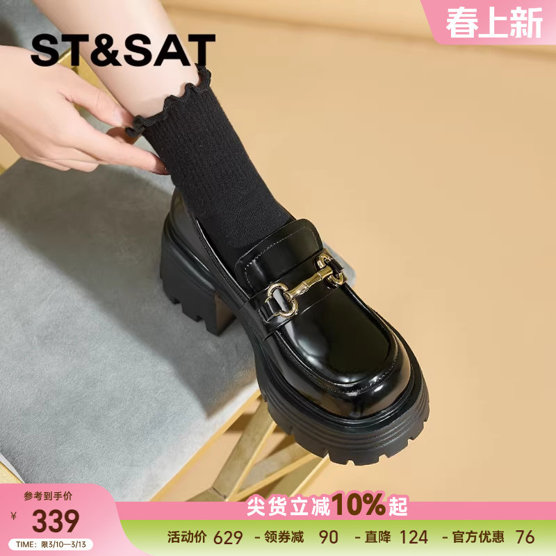 星期六厚底乐福鞋女新款春季女鞋一脚蹬通勤单鞋黑色jk小皮鞋爆款