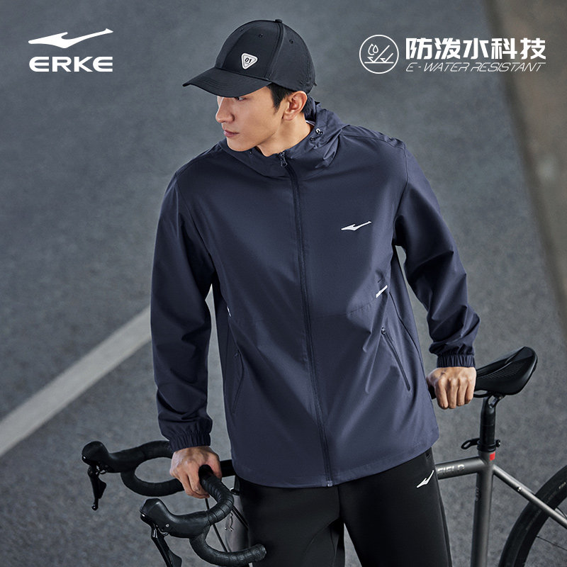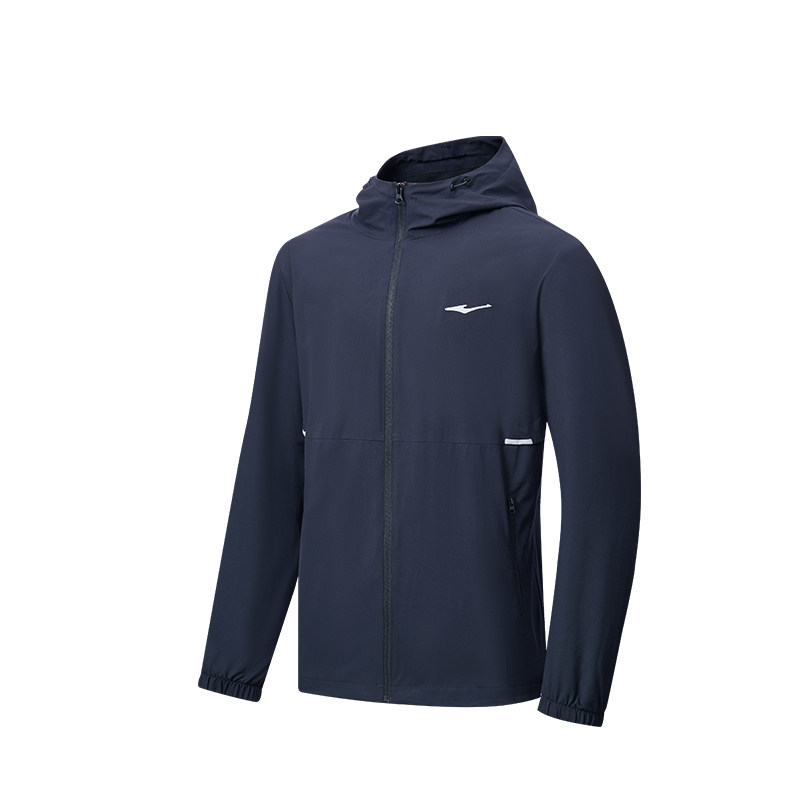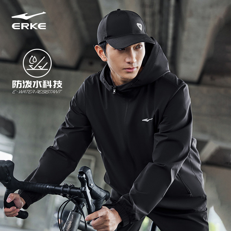 特步防泼水夹克外套男春秋季户外风衣连帽黑色上衣防风运动训练服