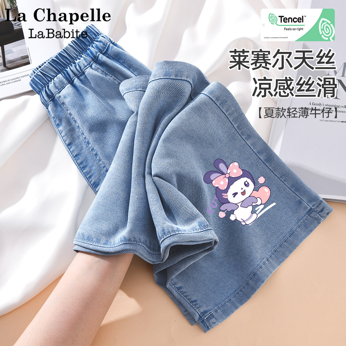 拉夏贝尔女童天丝牛仔裤夏季薄款2025新款休闲儿童阔腿裤夏装裤子