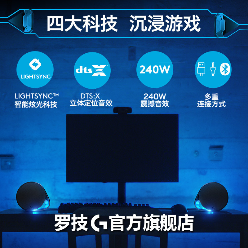 罗技G560游戏音箱响240W音效低音炮RGB灯效2.1多媒体音响电竞