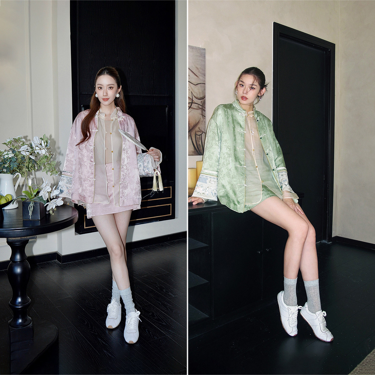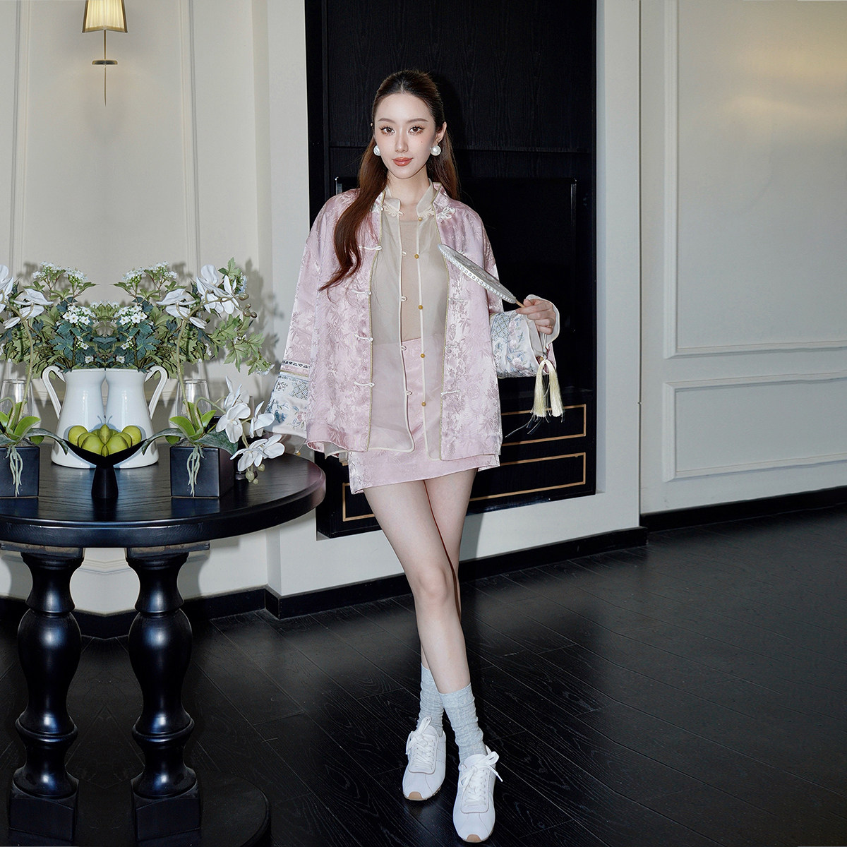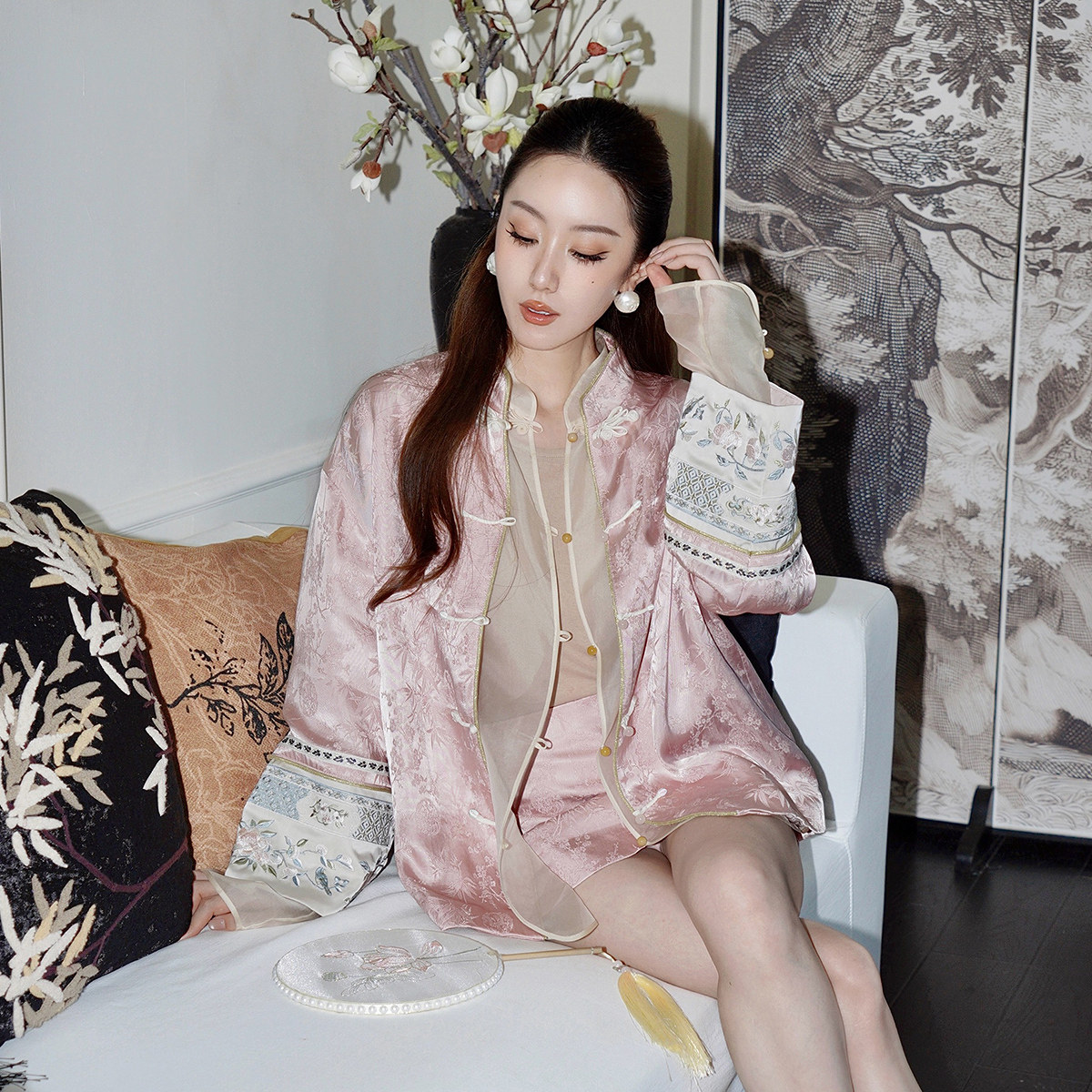 【新品】OCHIRLY欧时力 缎面提花盘扣新中式外套对襟绣花2025秋冬