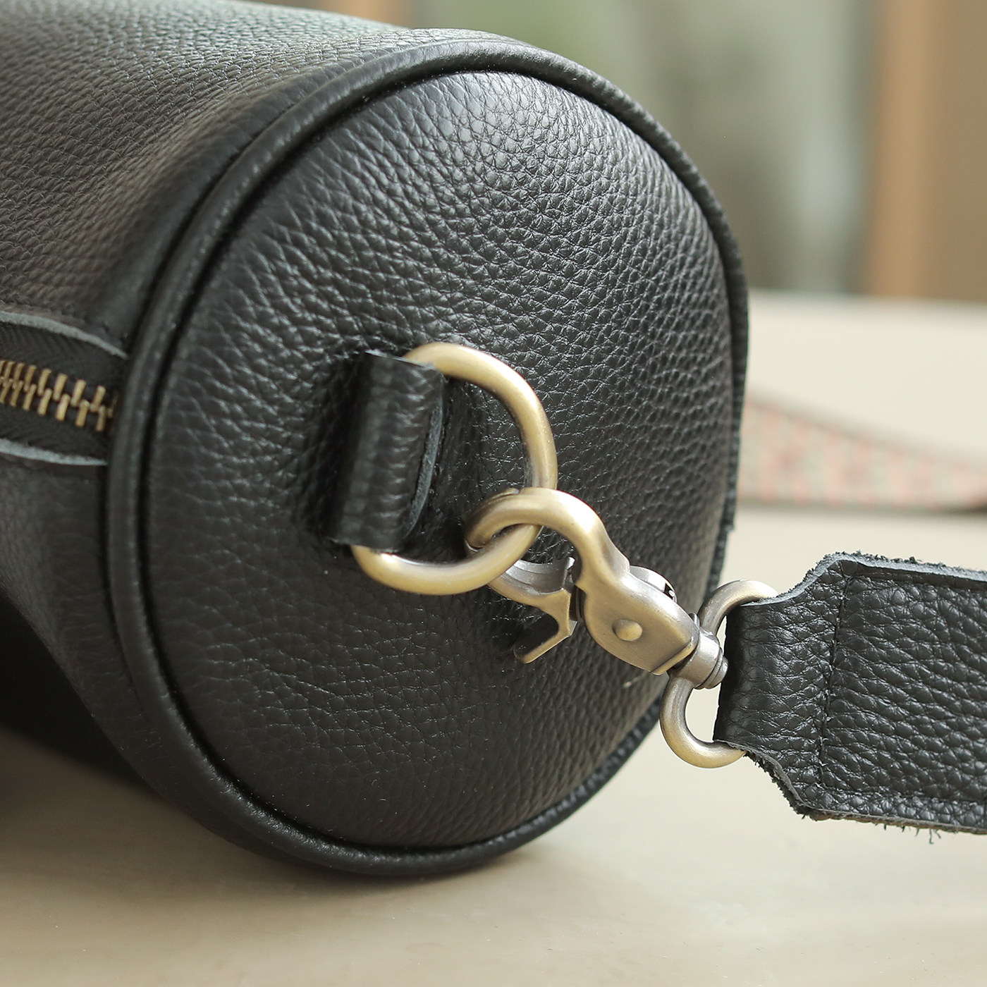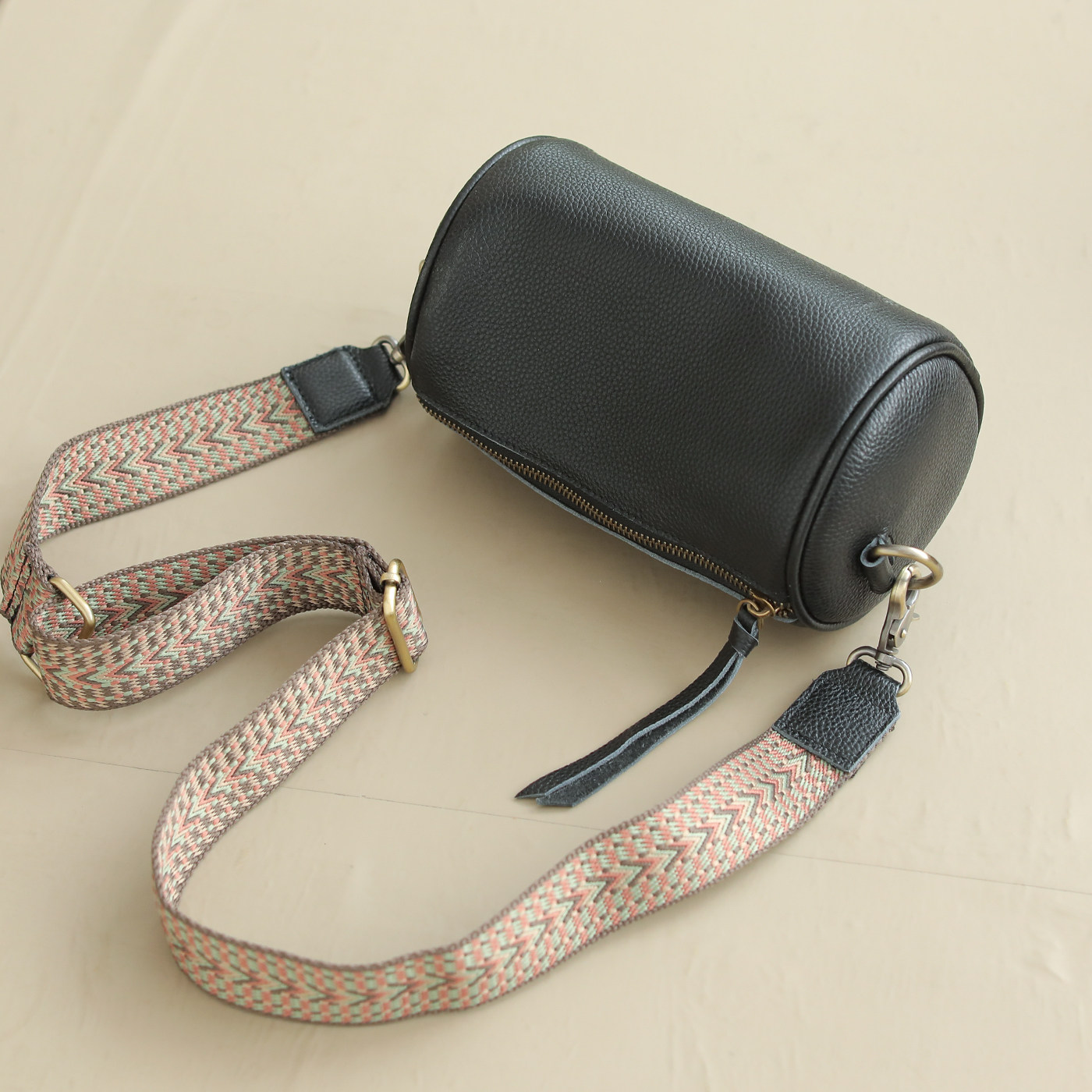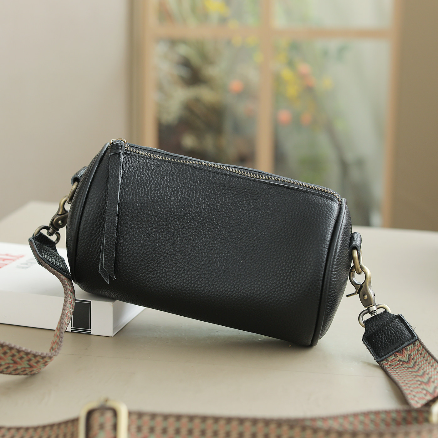 咖咪羽真皮包包女潮圆筒包质感单肩斜挎包头层牛皮软皮包枕头包