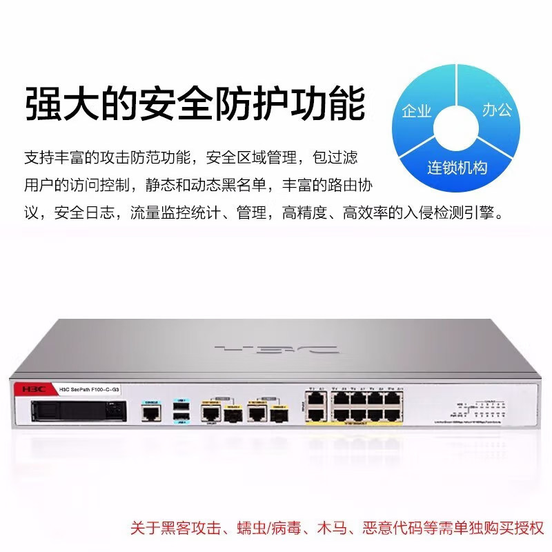 华三(H3C)F100-C-G5 企业级防火墙 2GE+8GE千兆网络安全上网行为管理中小型办公室 带机500 吞吐2G