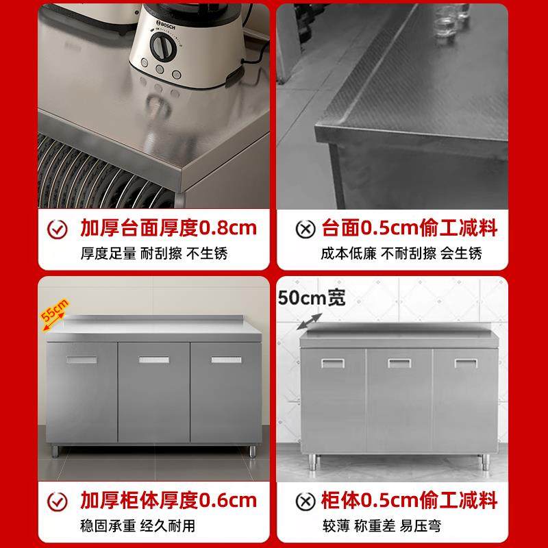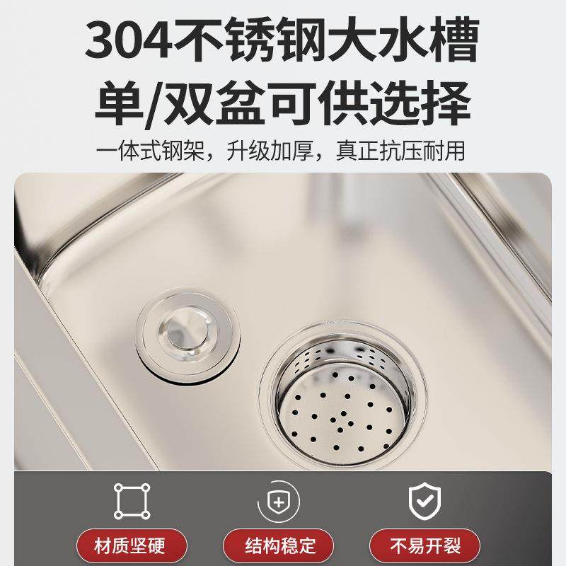 整体全不锈白钢厨房橱柜简易灶台一体储物纳碗家用小户型各种尺寸