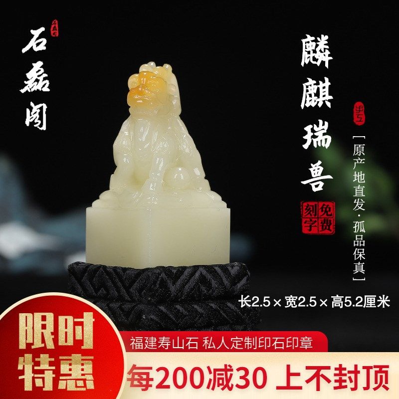 《麒麟瑞兽》寿山结晶将军洞芙蓉石 2.5L厘米方正印章章料闲章印