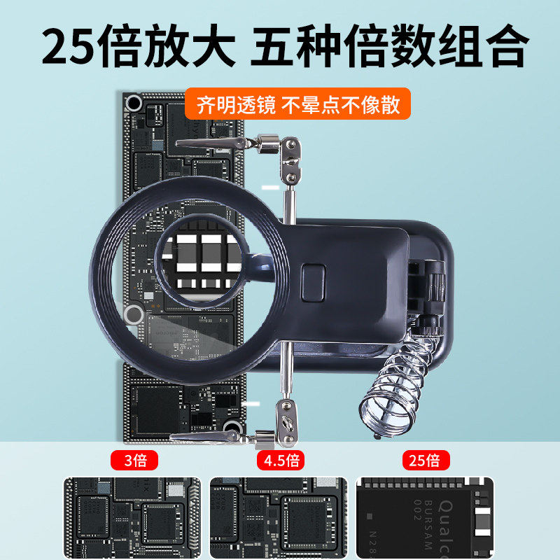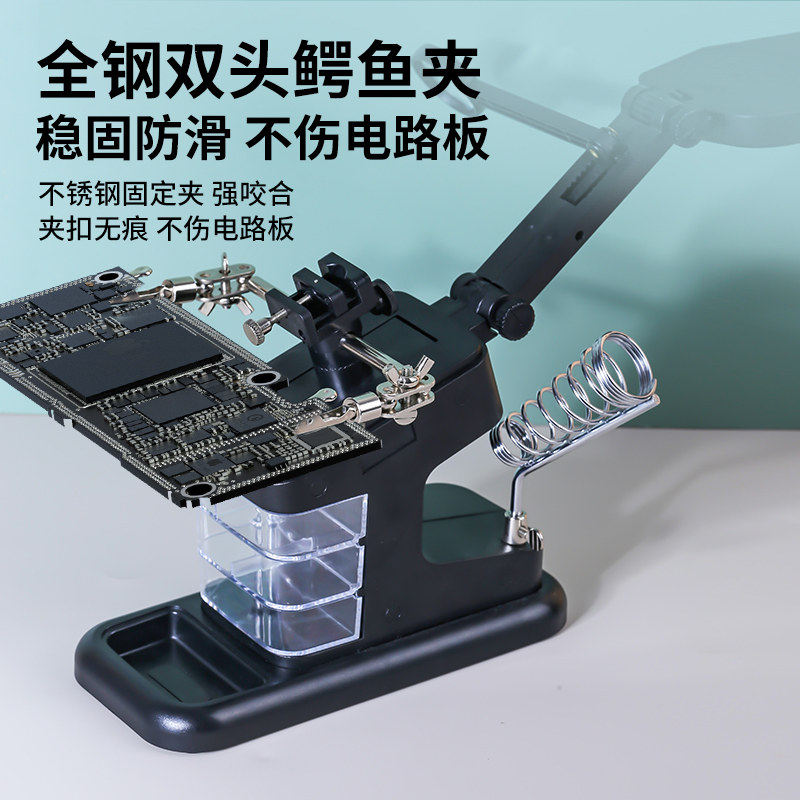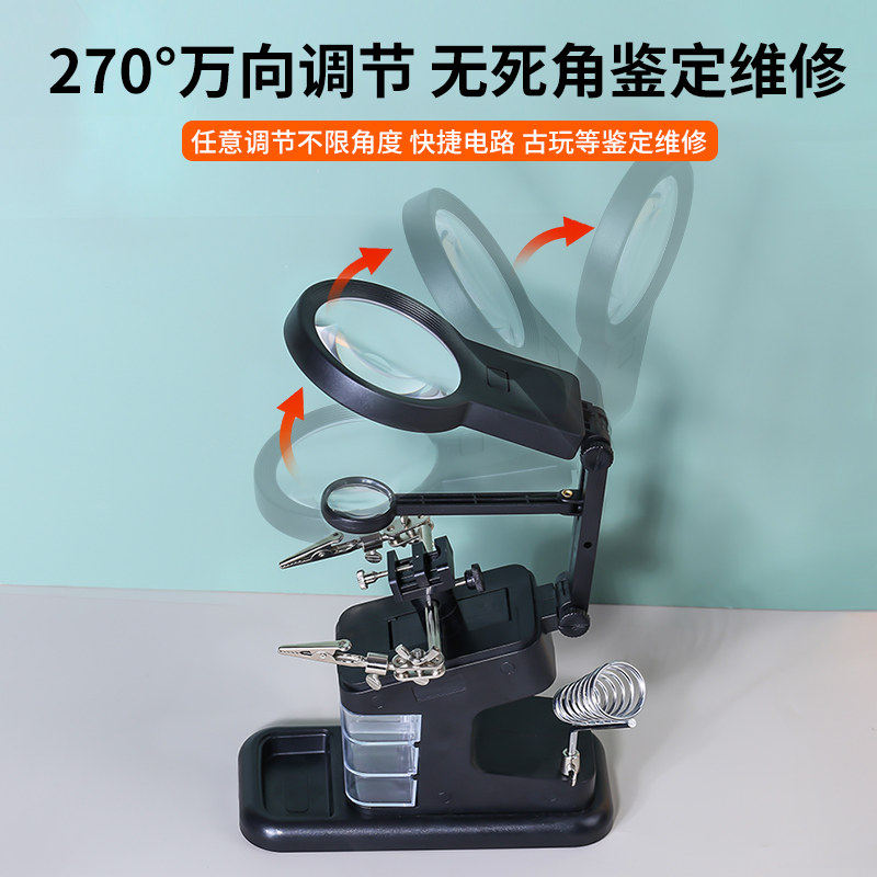 电烙铁焊接工作台放大镜带灯辅助夹具带烙铁架维修台式灯电路板