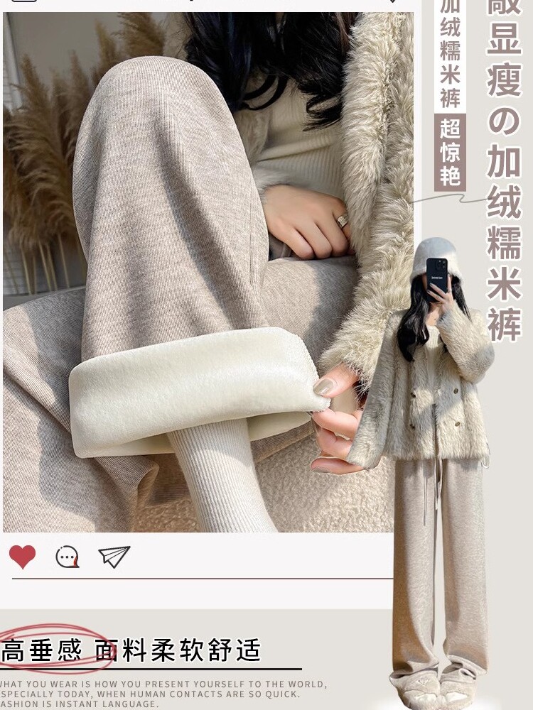 糯米裤女羊羔绒垂坠感软糯加绒加厚秋冬韩系慵懒松弛感阔腿裤TB