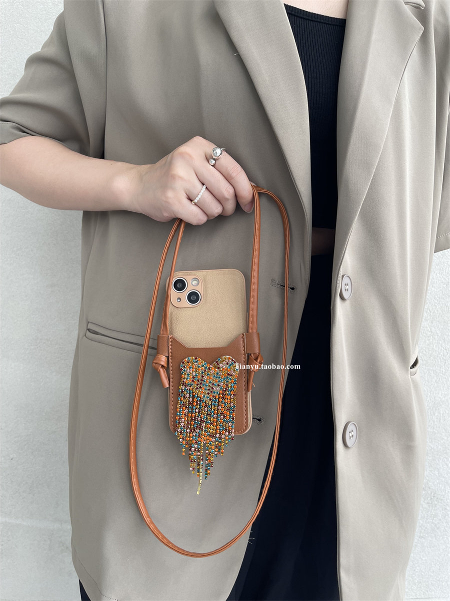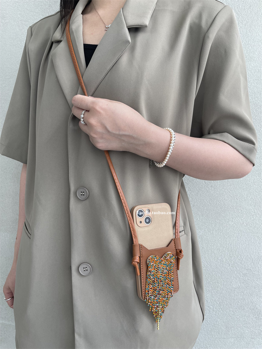 唯美流苏满钻爱心卡包适用于华为pura80手机壳mate50pro奢华mate60pro创意p50可背带pura70斜挎p40文艺p30pro