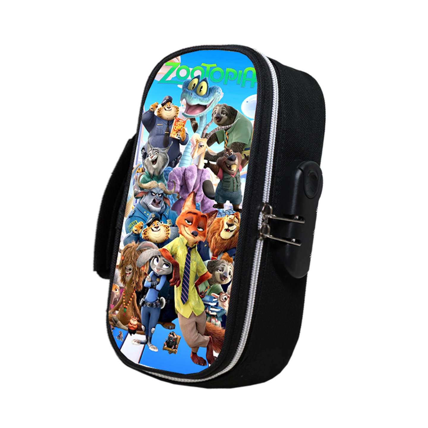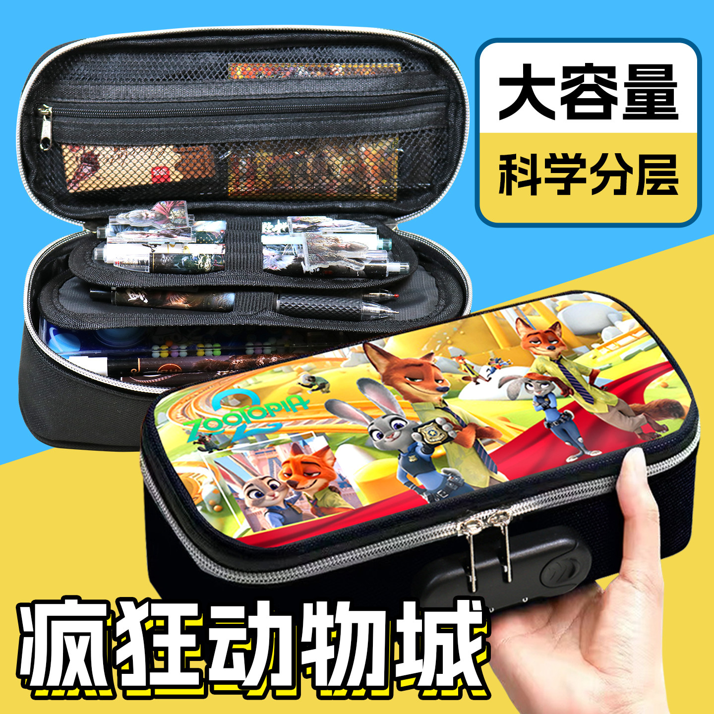 疯狂动物城密码锁笔袋男孩手提四层文具盒耐脏防摔中小学生铅笔盒