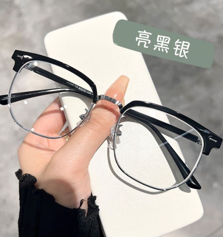 近视眼镜男潮半框素颜黑框可配脸小眼睛框架平光镜女镜框防蓝光